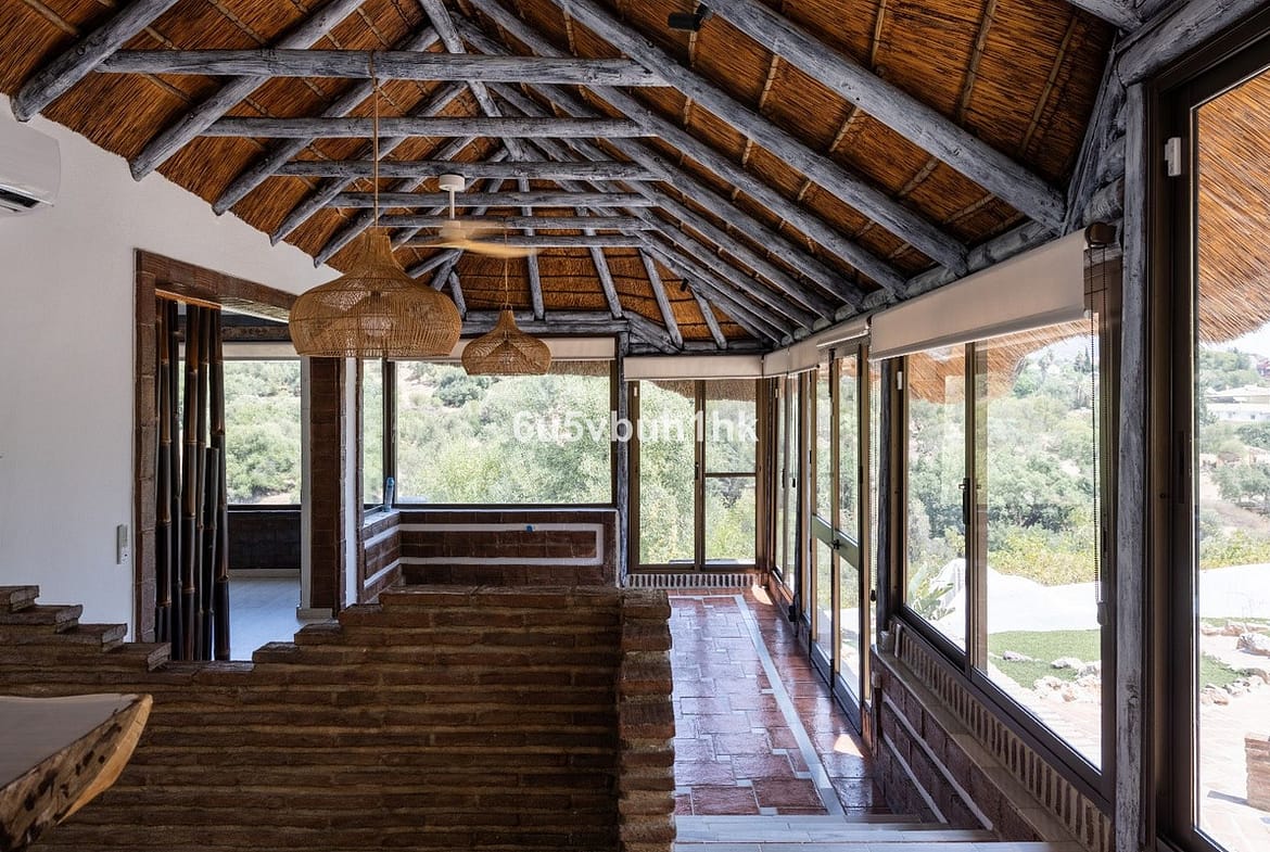 The exterior of the finca is designed to make the most of the outdoor lifestyle. The main entrance has a parking space with capacity for eight cars, while on the side, you will find a garage, barbecue area and a large paved outdoor dining area. The back of the property is a true oasis with a private pool, a relaxing chill-out area, an outdoor bathroom and well-kept gardens that invite you to relax and unwind.