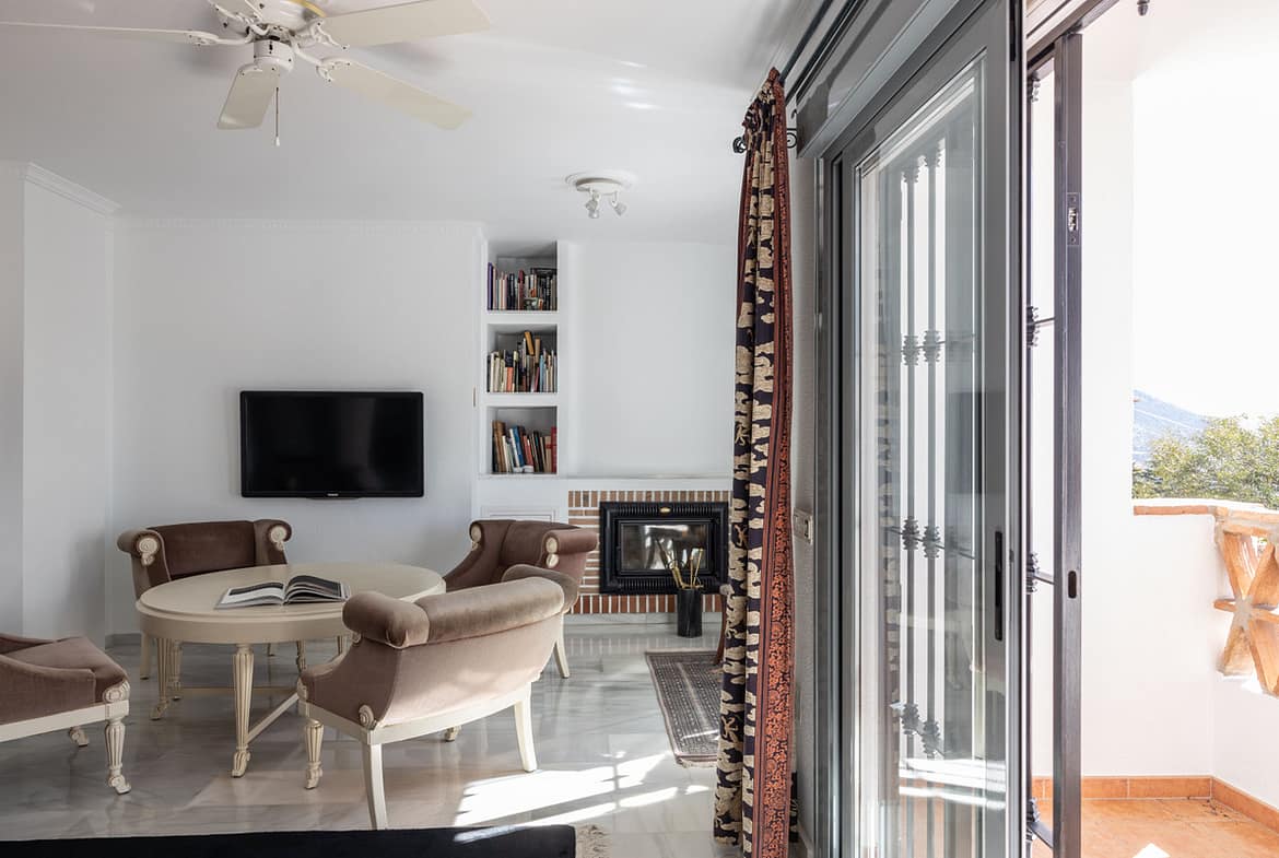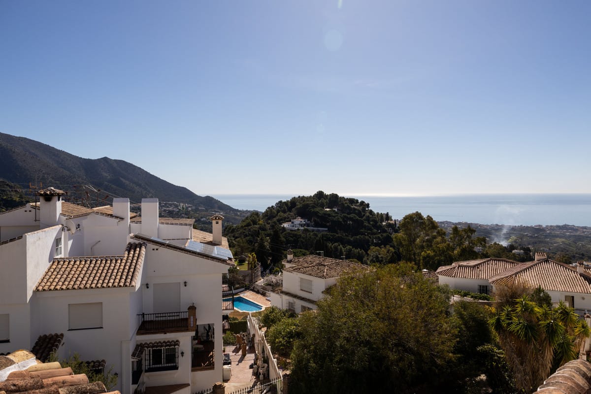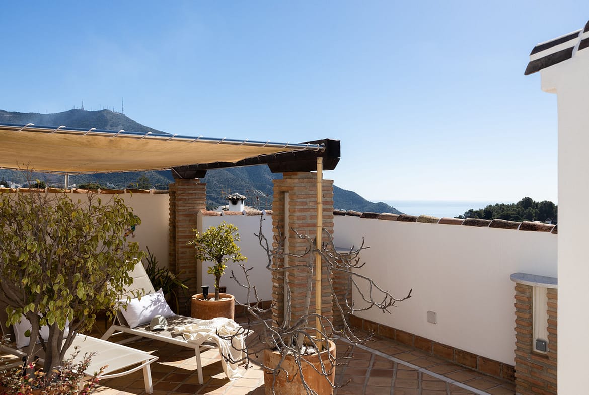 Immerse in the enchanting landscape of Mijas Pueblo, where the sun-kissed coast meets the majestic mountains, in this stunning villa. Offering an exceptional blend of luxury and comfort, this home has four bedrooms, three bathrooms, a large living area with a cozy fireplace. The kitchen area is a perfect combination of space and functionality. And when it is time for al fresco dining with family and friends, there could not be a better spot than the picturesque inner patio with lemon and mandarin trees. Step up to the sun roof terrace, and you'll be greeted with a breathtaking vista of the sea and mountains. Enjoy the warmth of the sun as you shower in the outdoor shower or lounge with a good book.