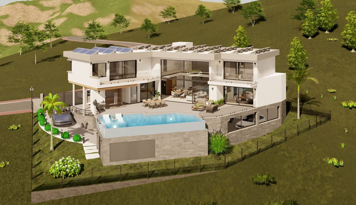 Tucked away in a beautiful corner of Mijas, this lovely villa offers breathtaking panoramic views that will truly impress. Perfectly designed for two families, it has three spacious bedrooms, plus an extra room with a double sofa bed, providing plenty of space and comfort for everyone.