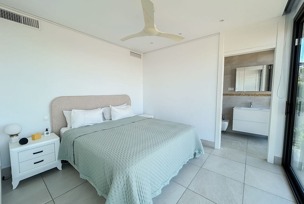 On the middle floor, at entrance level, the villa offers a covered garage for two vehicles, four comfortable bedrooms and three full bathrooms, two of which share a bathroom. In addition, there is a machine room that serves as a laundry room and a terrace with direct access from the secondary bedrooms, all designed to offer maximum comfort on a day-to-day basis.