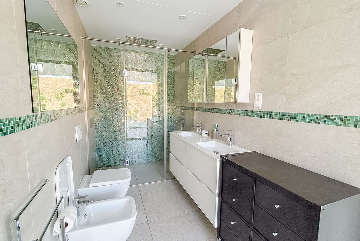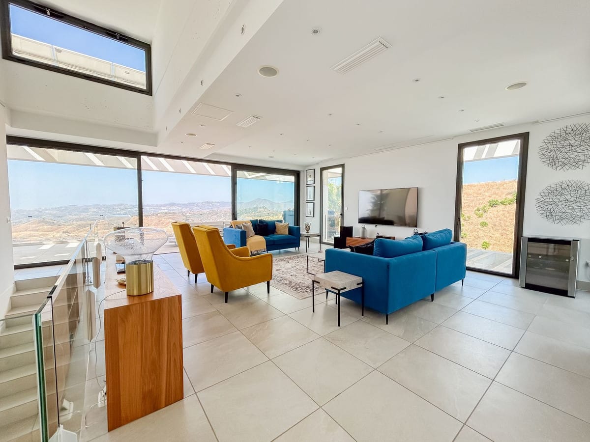 Built on a generous plot of 1,718 m², the property offers a total area of 312 m², distributed over three levels that combine functionality, design and warmth. With a privileged south and west orientation, the villa opens up to unrivalled panoramic views that encompass the Mijas valley, the majestic mountains and the blue Mediterranean Sea.