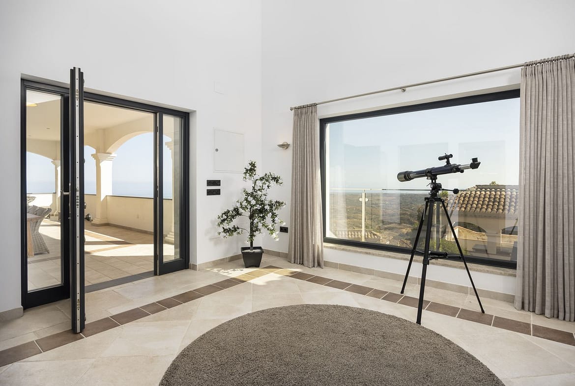 The property is surrounded by a wraparound garden with multiple terraces, a saltwater infinity pool plus a children’s pool, and a two-car garage. An eco-friendly septic tank recycles water for irrigation. This villa combines modern luxury, energy efficiency, and unbeatable panoramic views, all in a prime Costa del Sol location.