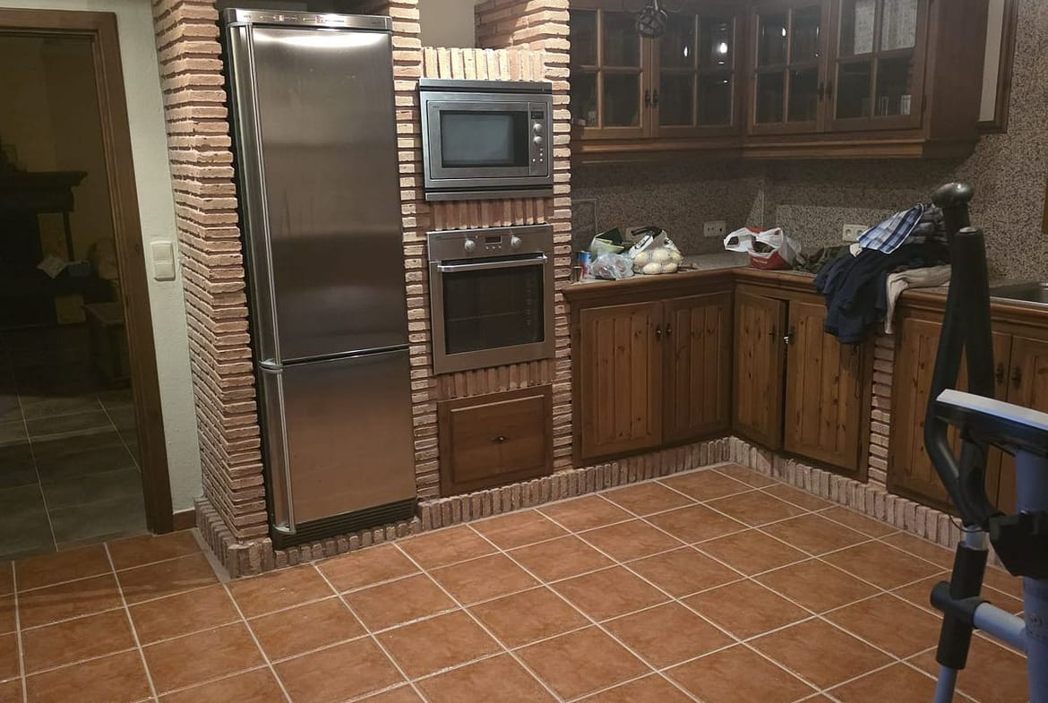 The main house, distributed over three levels, features an elegant living-dining room with fireplace, guest toilet, and a fully equipped rustic-style kitchen with direct access to the porch and an inviting interior patio. This floor also offers two bedrooms, both with built-in wardrobes and en-suite bathrooms.