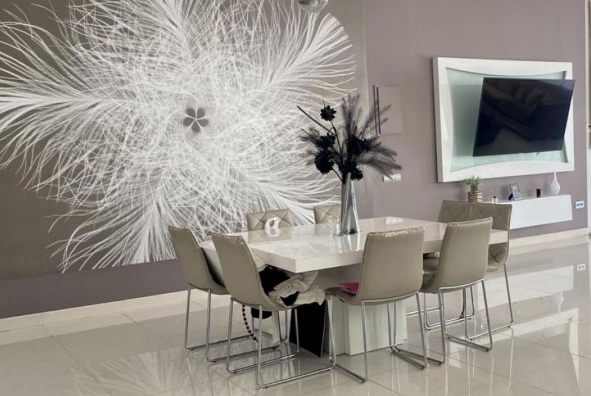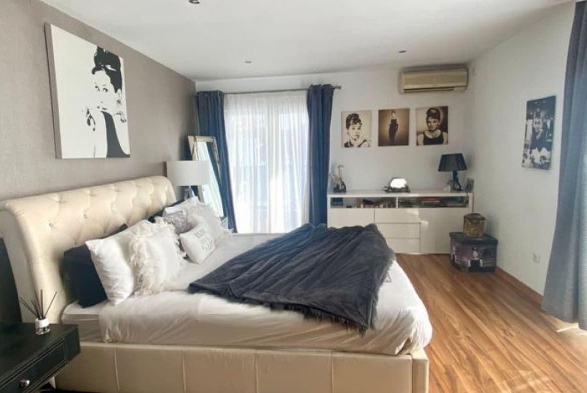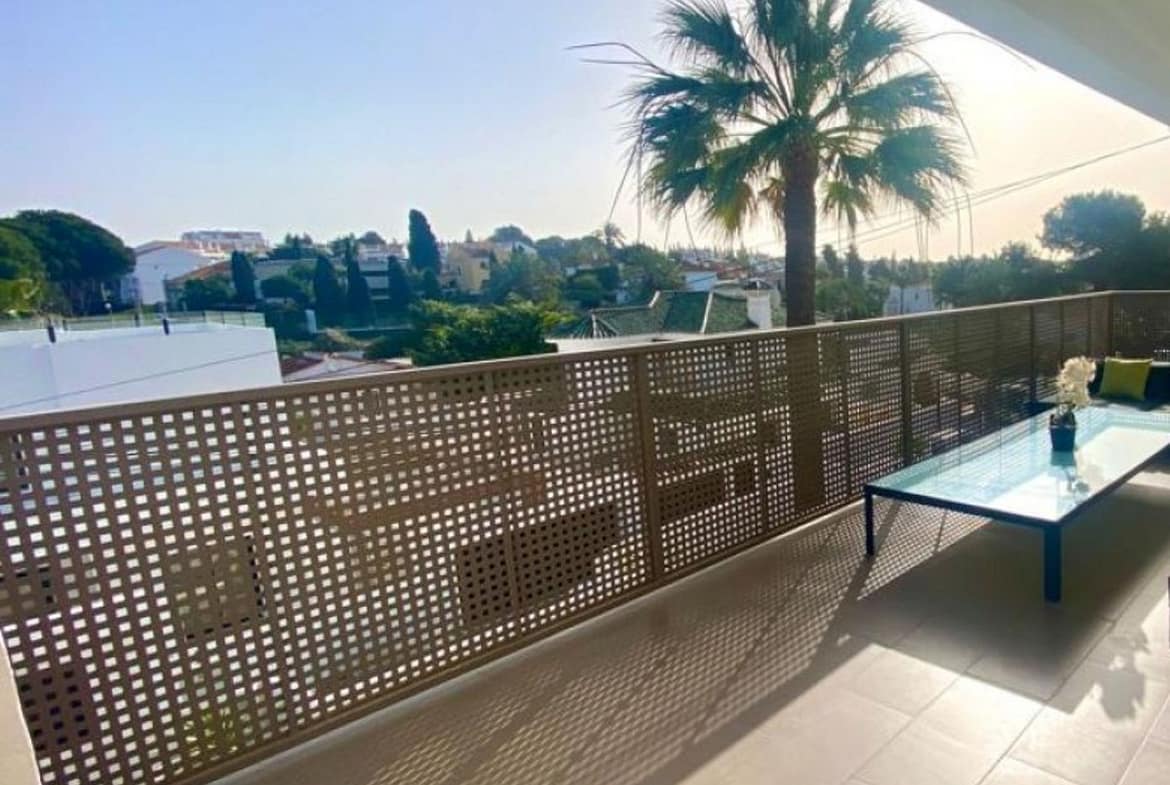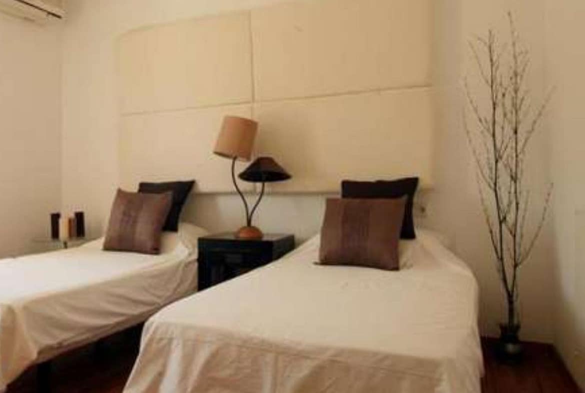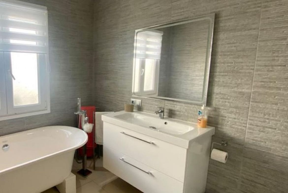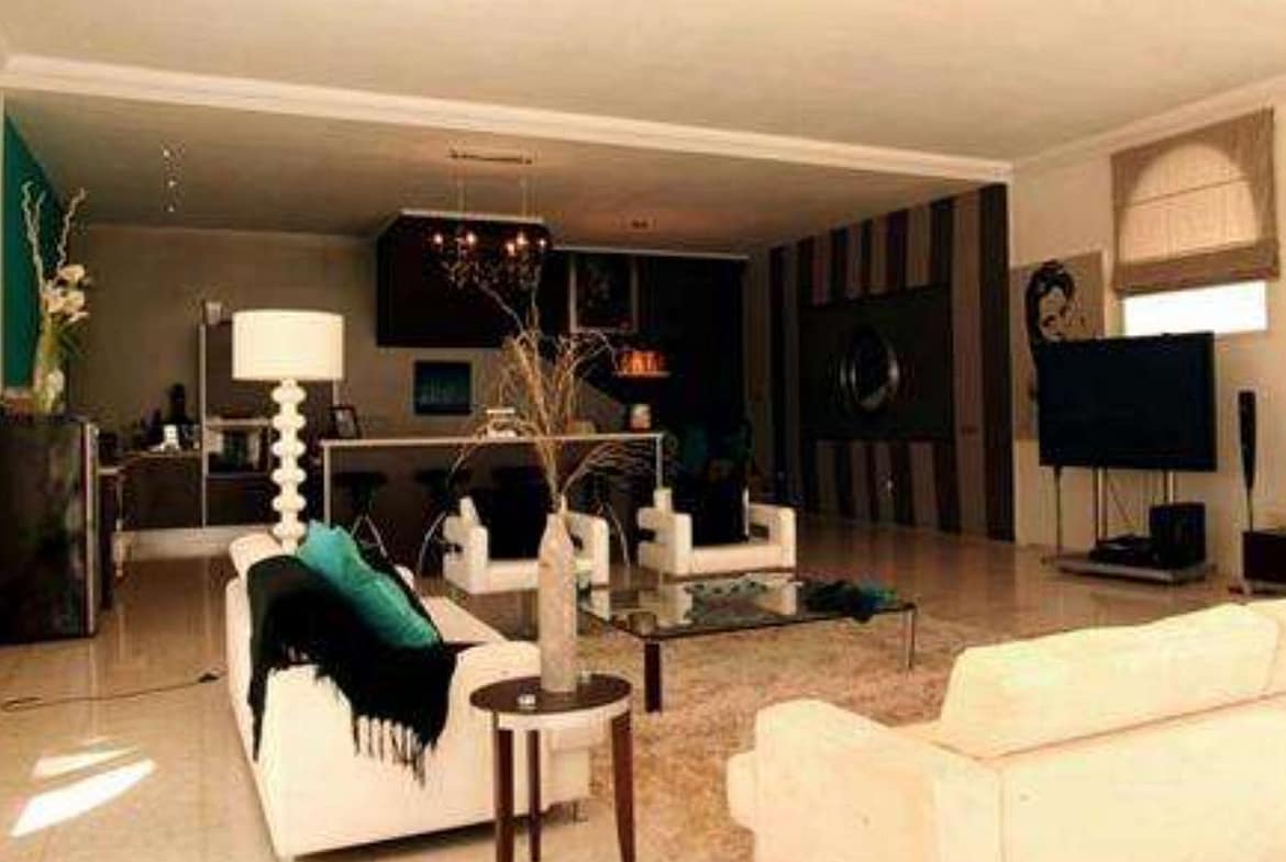 Standing out from most villas in the area, this property features four double bedrooms all on one level, all with light wooden floors and individual AC units and three of which having large patio doors leading out to spacious terraces. The master bedroom is over 55m2 with an en-suite bathroom and walk-in wardrobes and leads out onto the front terrace. Another bedroom suite has its own dressing room in between the ensuite shower room and bedroom, which in turn also leads onto the front terrace