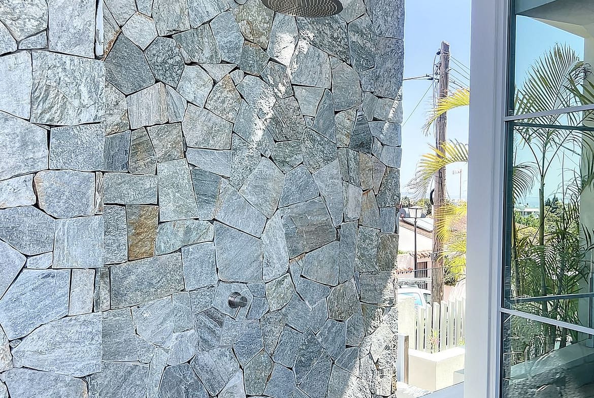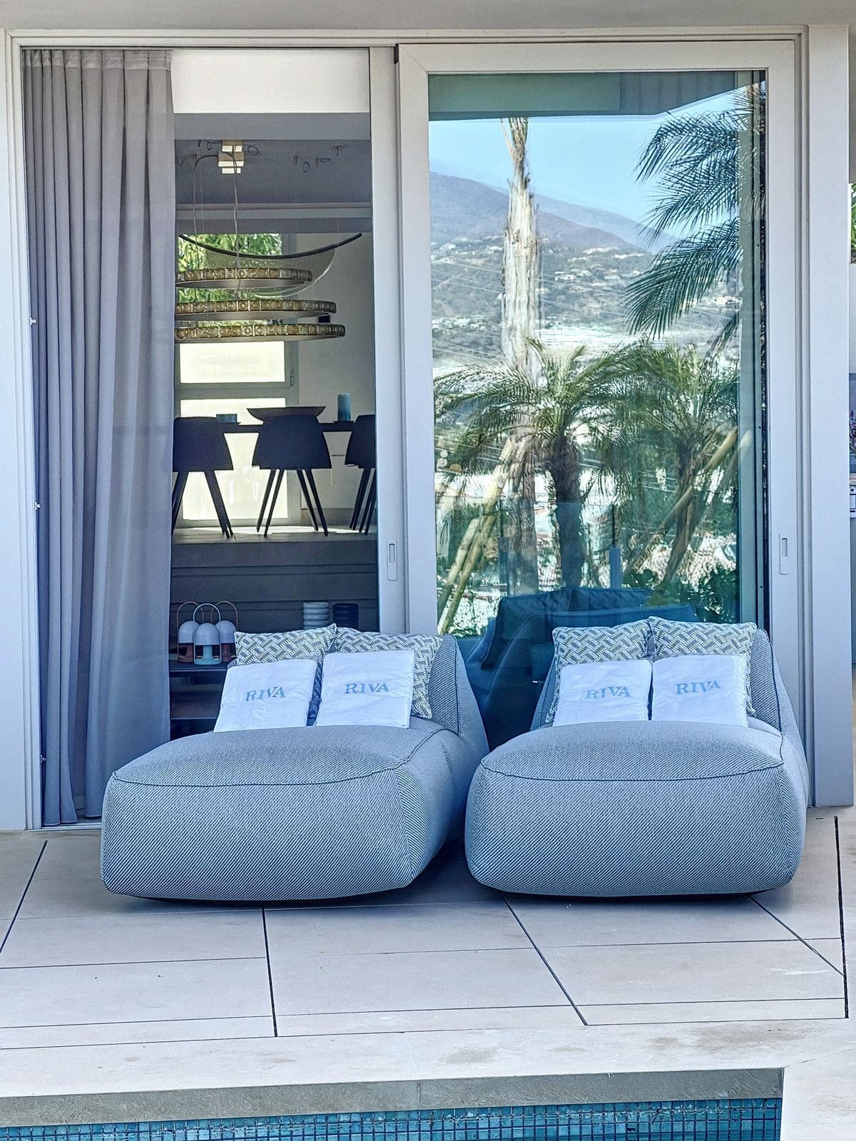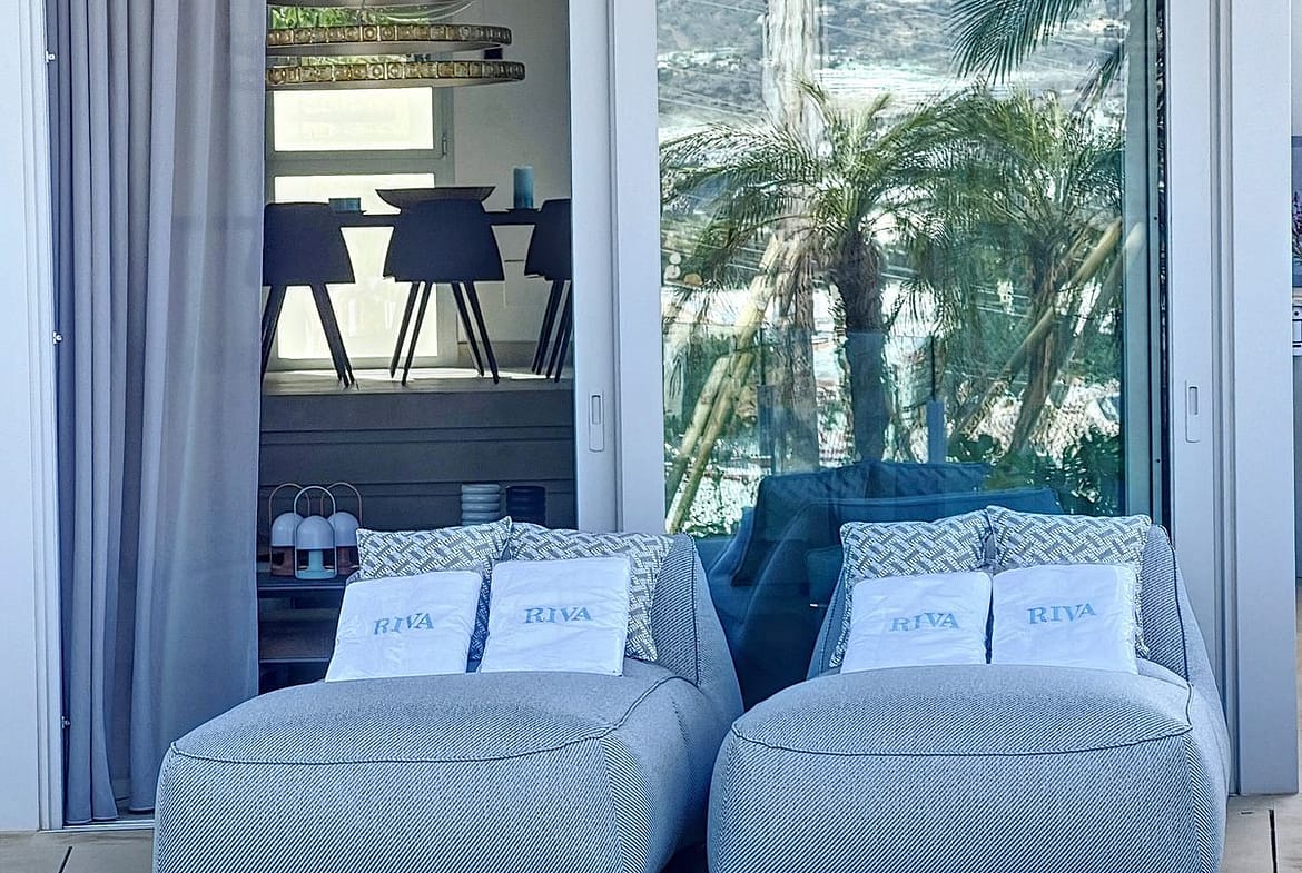 The combination of the bright open plan kitchen and the living area with the big sliding windows overlooking the big plunge pool creates a nice. cosy and yet very bright airy living space.