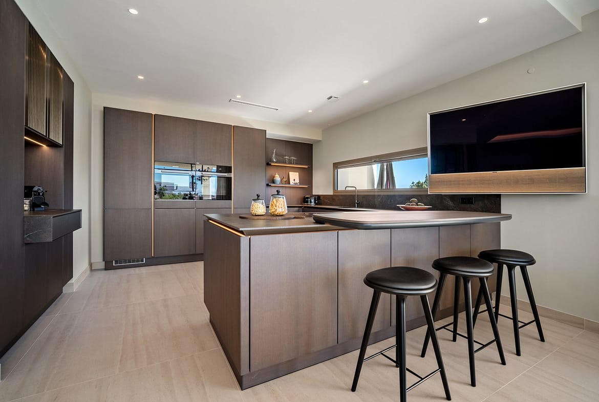 Spread across four luxurious levels and connected by a private elevator, the home exudes both comfort and convenience. The sleek Siematic kitchen comes fully equipped with premium appliances, while underfloor heating ensures year-round comfort and energy efficiency. Integrated Bang & Olufsen speakers and TVs elevate the living experience with timeless elegance and superior sound.