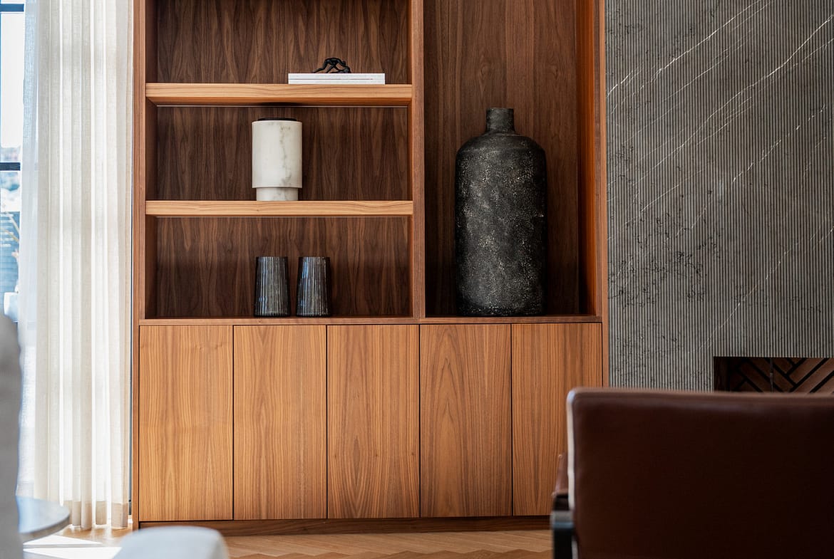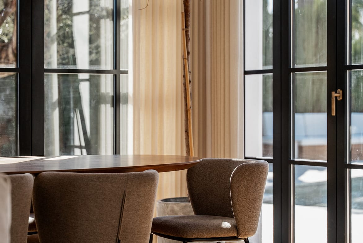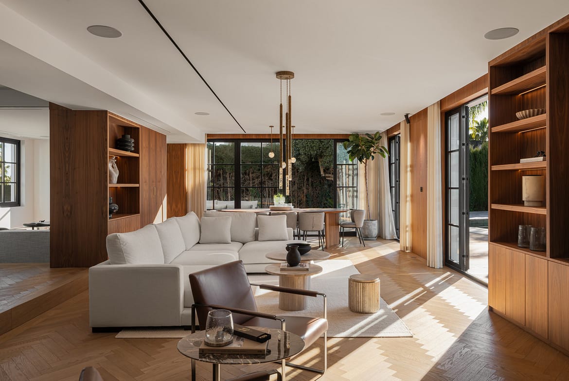 This is not your average Golf Valley villa. It has been redesigned with a clear architectural direction, where proportions, materials and flow have been carefully selected. From the entrance, the detailing is evident: herringbone oak flooring, bespoke walnut joinery, fluted cabinetry and dark-veined marble, all brought together with consistency rather than contrast for effect.
