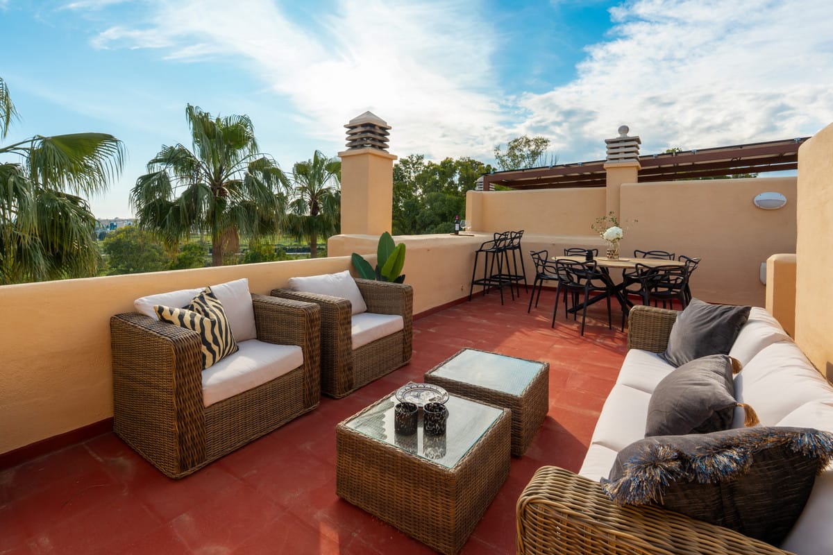 This exceptional, newly renovated townhouse is located in the sought-after urbanisation Condes de Iza, ideally positioned between Nueva Andalucía and San Pedro in Marbella. Enjoying a prime southwest orientation and an open outlook with no properties directly in front, this is one of the best locations in the community. The property offers beautiful sea views, visible even from the garden and main living areas.