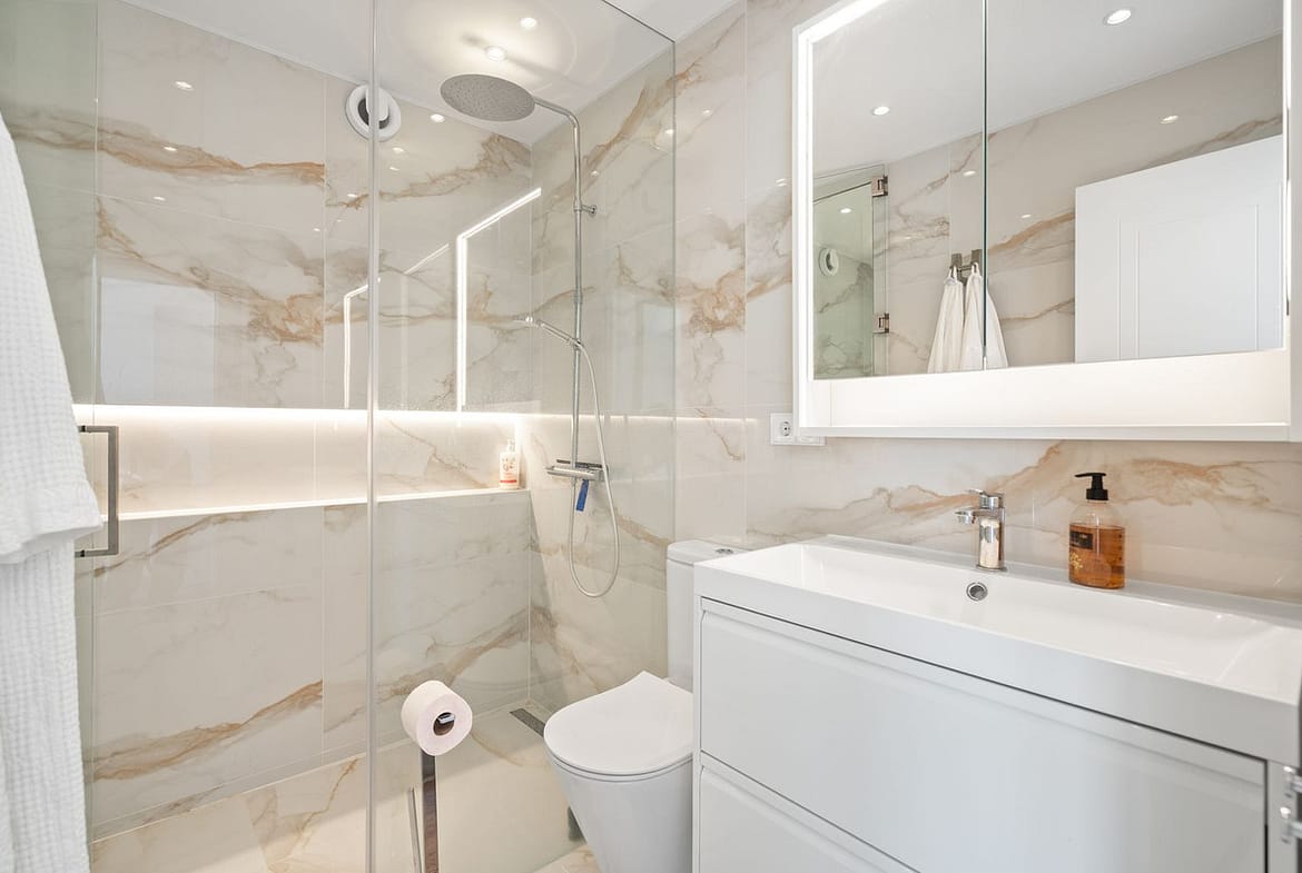 Upstairs, you’ll find three comfortable bedrooms, including a master suite with its own private bathroom and access to a sunlit terrace. A second full bathroom serves the remaining bedrooms.