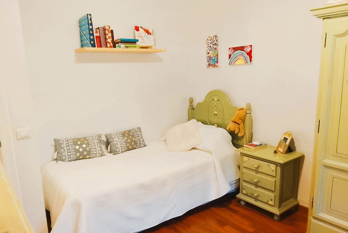 In the attic, another spacious bedroom with a study area and a small roof terrace has been created. The entire house is air-conditioned and secured by a modern alarm system.