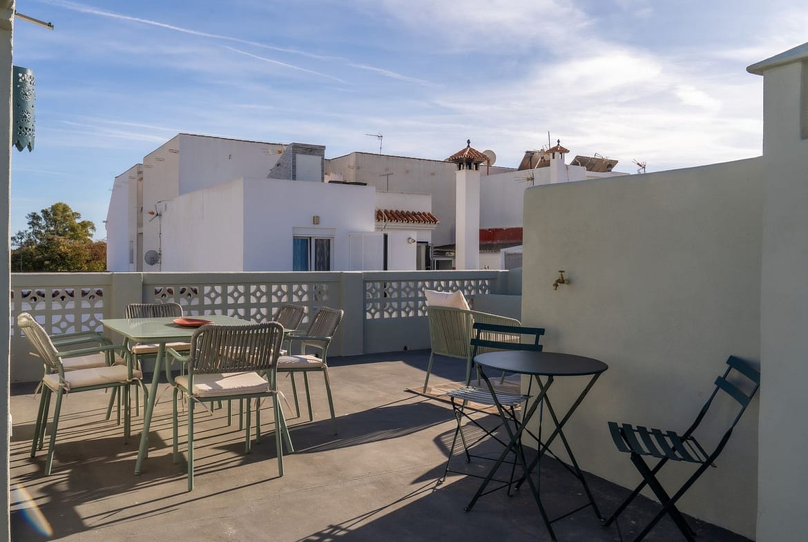 The apartment offers three bedrooms and two bathrooms with shower. The fully fitted kitchen, rich in character and charm, is ideal for everyday cooking. The cozy living room has stairs leading to the private solarium, which offers an idyllic setting for sunbathing, relaxing, or enjoying al fresco meals.