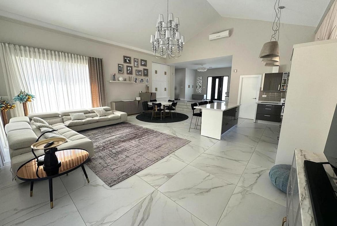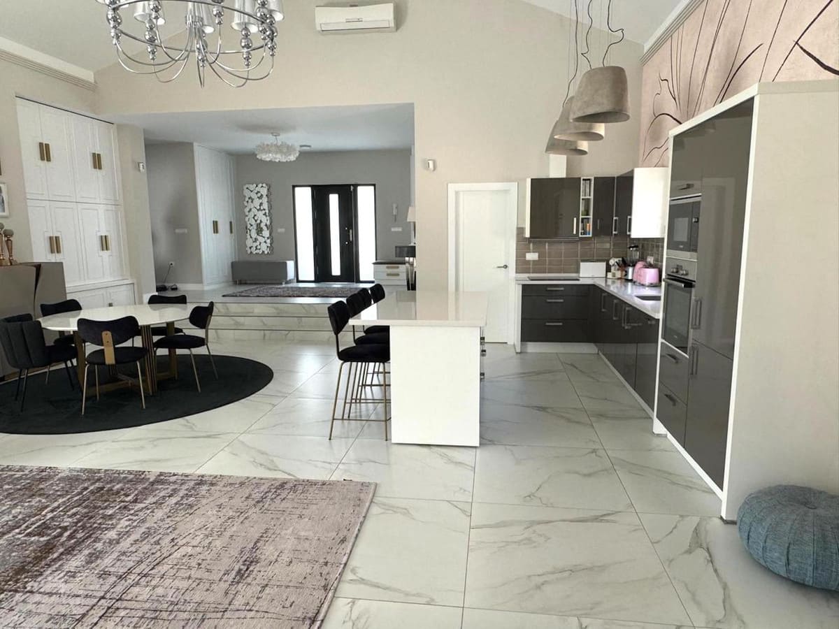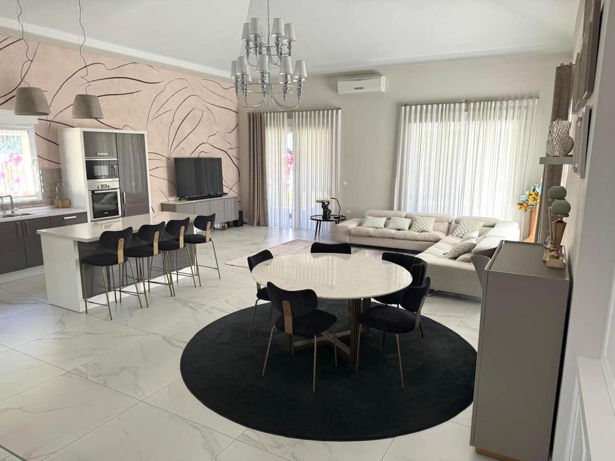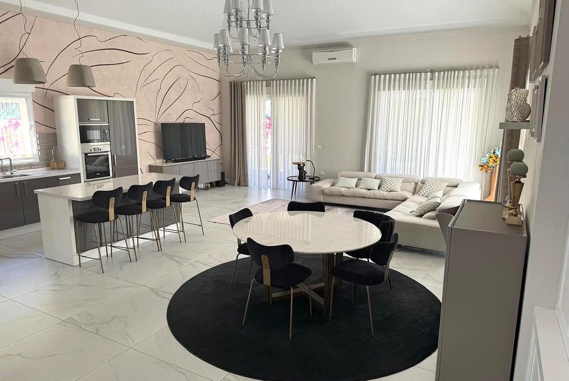 House with private garden and private pool has 4 bedrooms, 2 bathrooms, living room with kitchen, terrace and barbecue area.