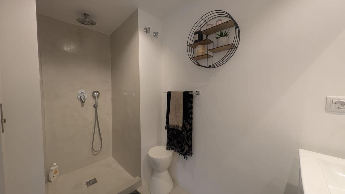 On the ground floor, a spacious living room opens onto a 25 m² terrace with direct access to the communal pools and gardens, ideal for enjoying with family or friends.
