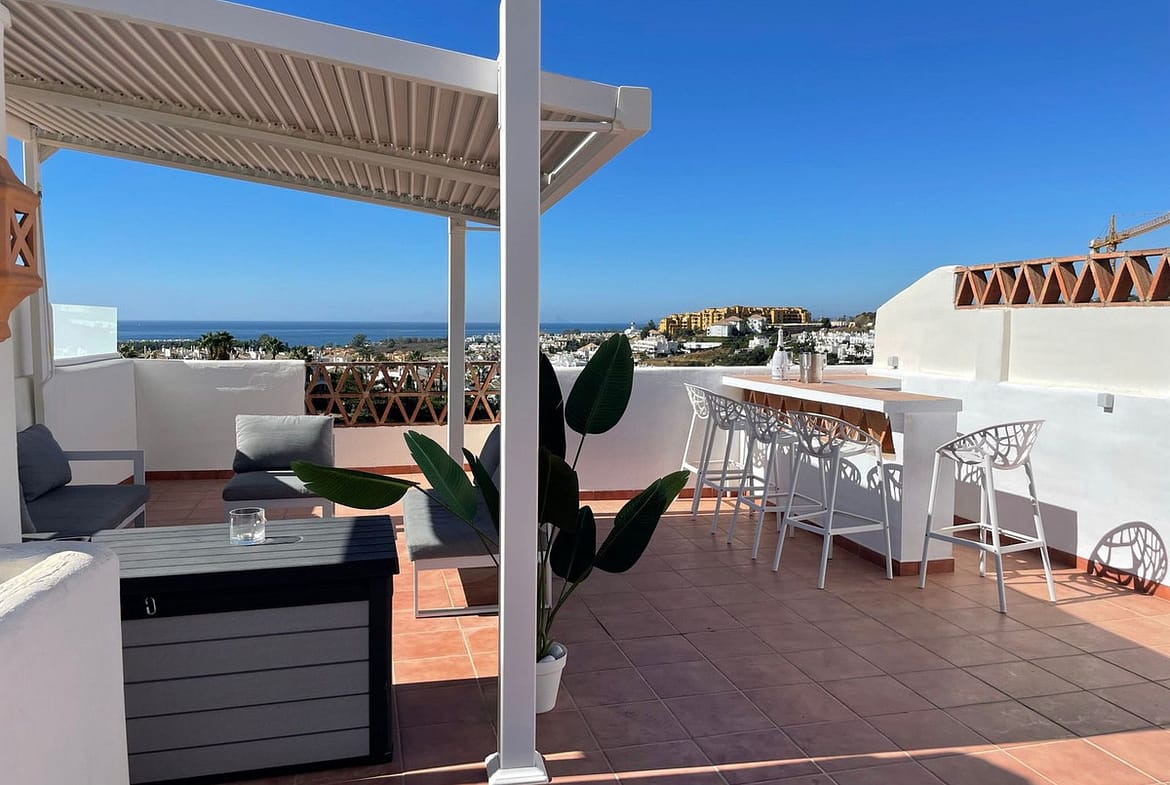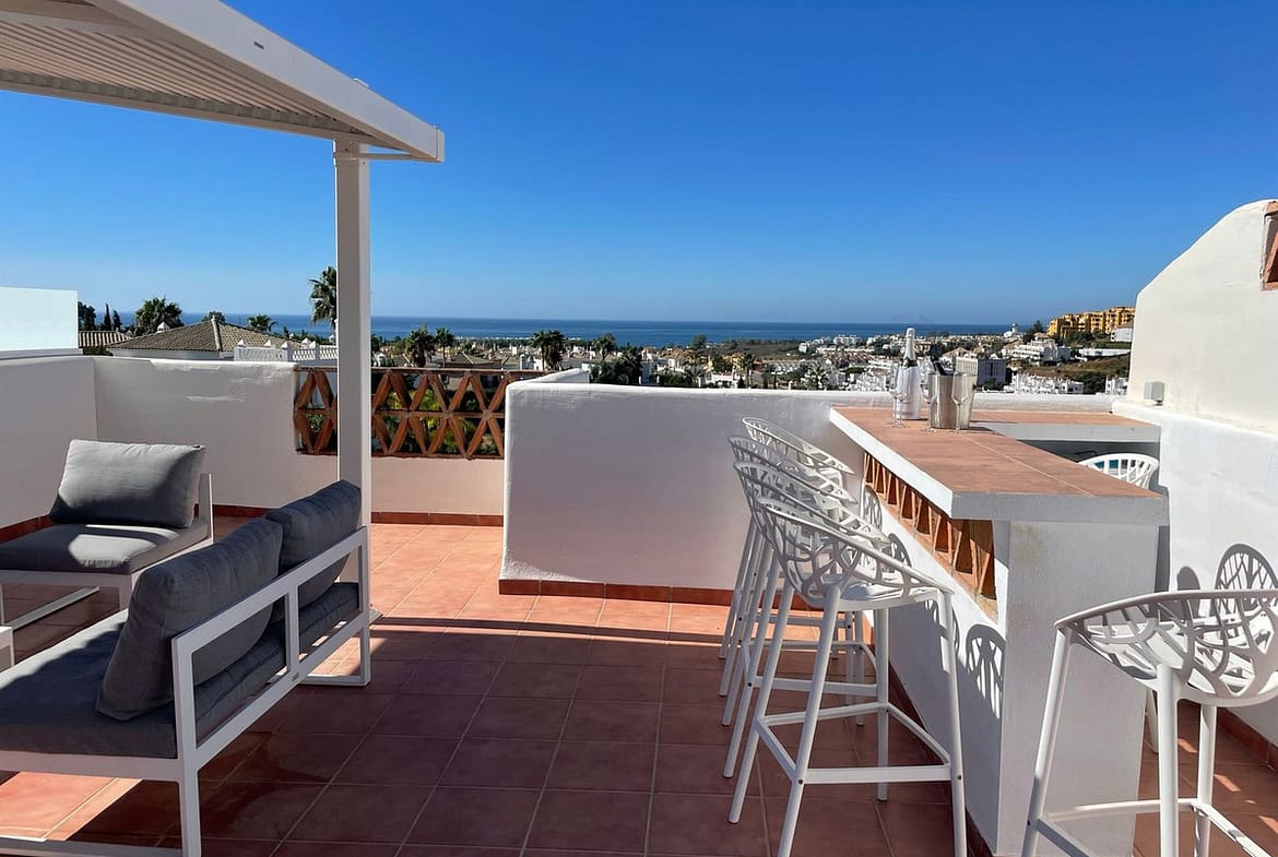 Very spacious and with wonderful sea, mountain and golf views. It has private garage.