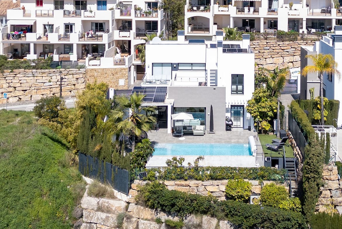 Discover this modern, recently built villa of the highest quality. Located in La Resina Golf, this property sits on a 611 m² corner plot with fantastic unobstructed views, and comprises 4 spacious en-suite bedrooms, large terraces, a basement and a private garden with an infinity pool.