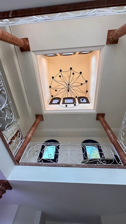 The main level features two spacious en-suite bedrooms, while the lower level offers an additional en-suite guest bedroom—perfect for visitors or extended family. A private LIFT connects all floors of the villa, offering seamless movement between living spaces and enhancing the home’s sense of comfort and accessibility. This modern convenience, paired with a discreet professional sound system installed throughout the property, creates an atmosphere of effortless luxury.