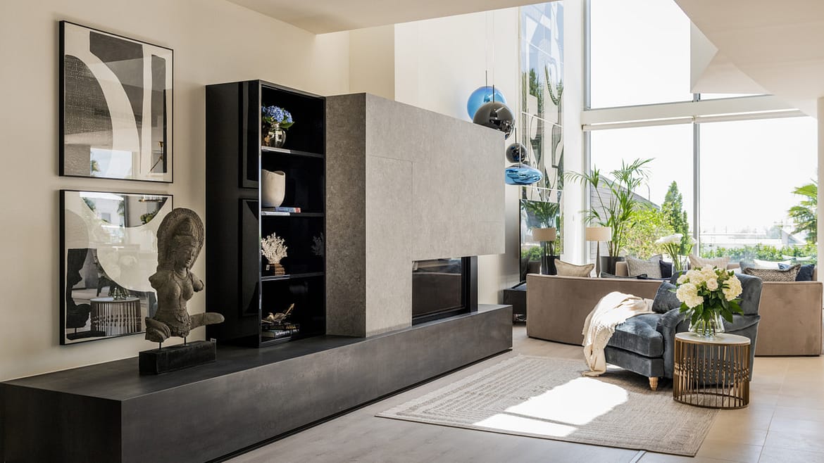 This luxurious modern house for sale in the heart of the Sierra Blanca is set in the most exclusive residential complex, Meisho Hills, built on a plot of 33.500m2 in 2012. The complex has a total of 58 semi-detached villas, including this unique corner villa, which boasts stunning views of Marbella city, the Mediterranean sea, Gibraltar, and the Moroccan mountain range.