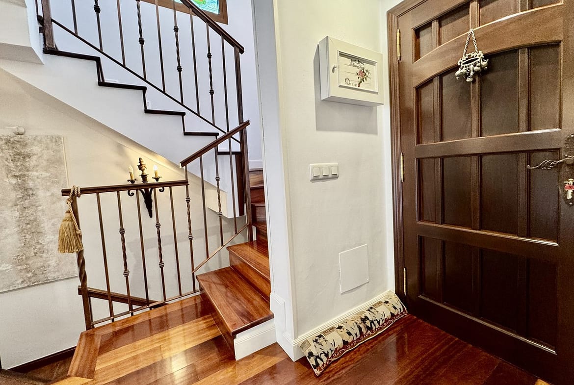 Upon entering, you are welcomed by a cosy entrance hall. To the left, a spacious fully equipped independent kitchen with laundry area and direct access to the garden. To the right, a guest toilet and an elegant staircase leading to the upper floor and basement.