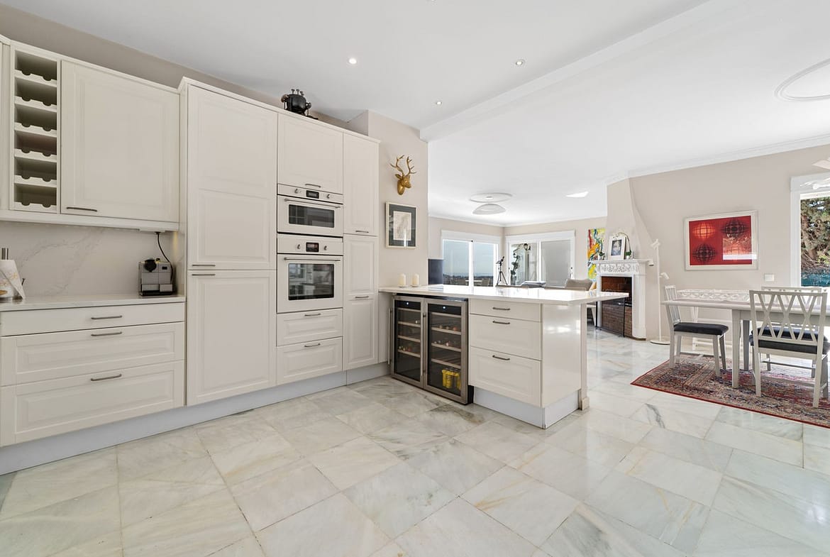 The open-plan kitchen seamlessly connects to the bright living area and opens onto the beautiful terrace – the heart of the home.