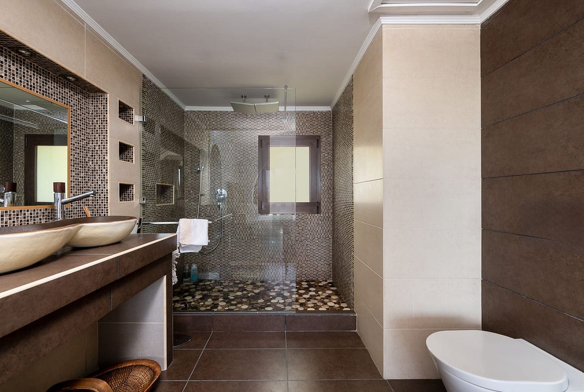The upper floor is dedicated to another luxurious master bedroom, complete with an en-suite bathroom, an expansive dressing room, and access to a private terrace with stunning sea views. From this terrace, you can ascend to the solarium, where panoramic views of the Mediterranean create the perfect backdrop for enjoying the serene surroundings. There is a possibility of extending by 80m2.