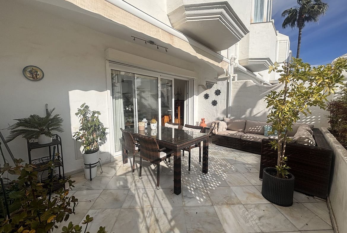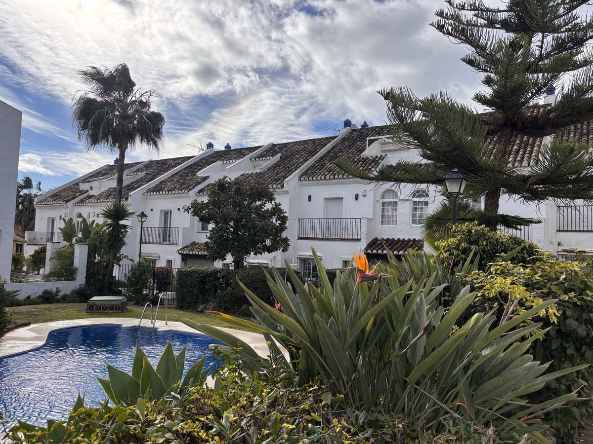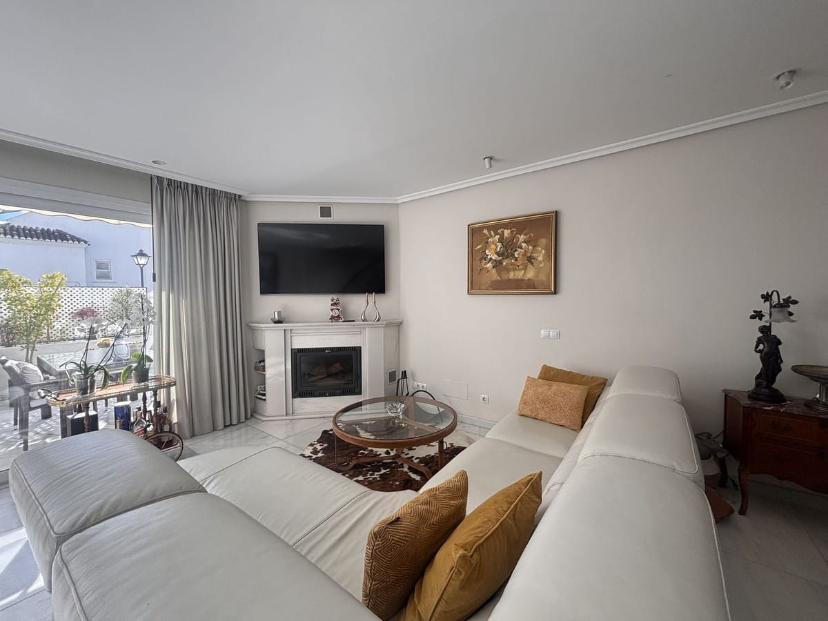 Exclusive townhouse located in one of Marbella’s most prestigious areas, on the Golden Mile. The property is set in a gated community with well-maintained gardens and a communal swimming pool, just a short walk from the beach and close to the renowned Puente Romano and Fórum restaurants. The house is spacious, filled with natural light, and offers a high level of privacy. It features a pleasant terrace with an outdoor dining area, ideal for year-round enjoyment. The property comprises three bedrooms, three full bathrooms, a guest toilet, a generous living room with fireplace, a separate fully equipped kitchen, and a laundry area. Additional features include a private garage with direct access to the house and a versatile semi-basement level with a bathroom. Underfloor heating is installed on the ground floor. The property is rented furnished, with the option to remove part of the furniture if required. Its location is exceptional, with easy access to beaches, services, and some of the most exclusive leisure areas in Marbella.