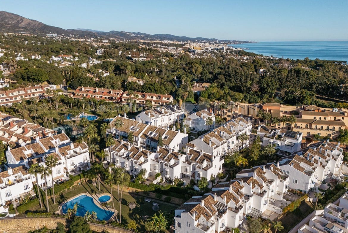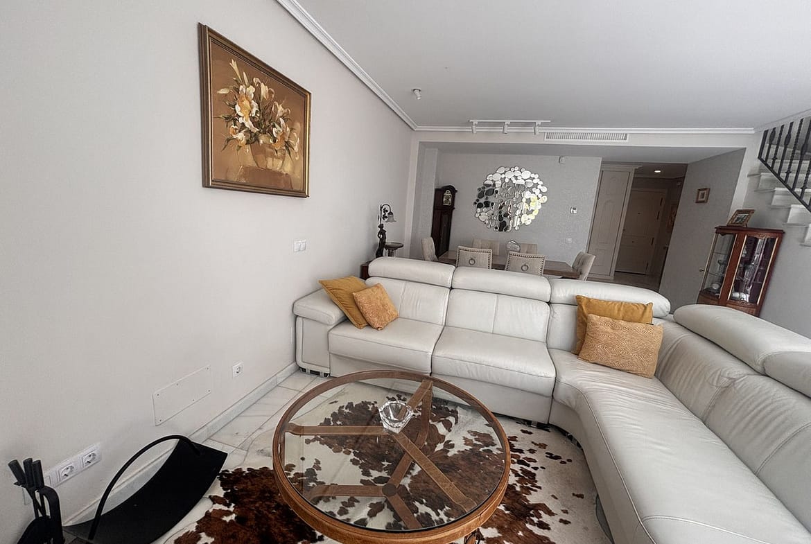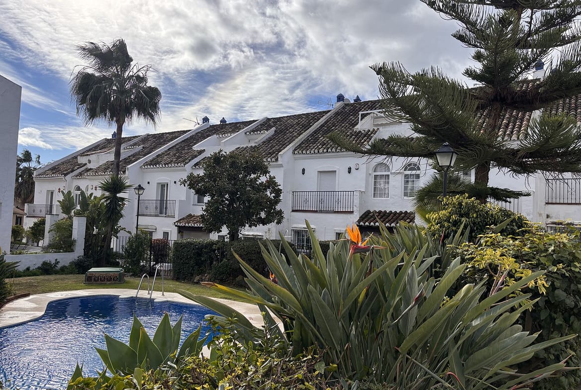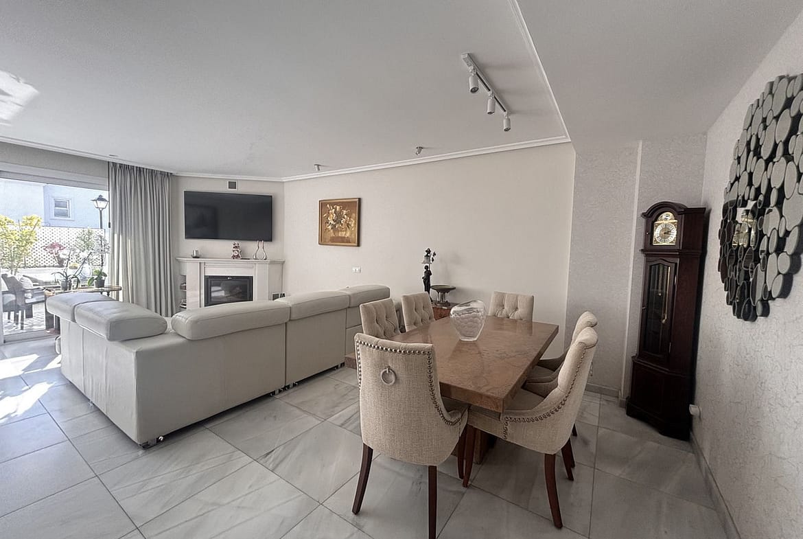 Exclusive townhouse located in one of Marbella’s most prestigious areas, on the Golden Mile. The property is set in a gated community with well-maintained gardens and a communal swimming pool, just a short walk from the beach and close to the renowned Puente Romano and Fórum restaurants. The house is spacious, filled with natural light, and offers a high level of privacy. It features a pleasant terrace with an outdoor dining area, ideal for year-round enjoyment. The property comprises three bedrooms, three full bathrooms, a guest toilet, a generous living room with fireplace, a separate fully equipped kitchen, and a laundry area. Additional features include a private garage with direct access to the house and a versatile semi-basement level with a bathroom. Underfloor heating is installed on the ground floor. The property is rented furnished, with the option to remove part of the furniture if required. Its location is exceptional, with easy access to beaches, services, and some of the most exclusive leisure areas in Marbella.