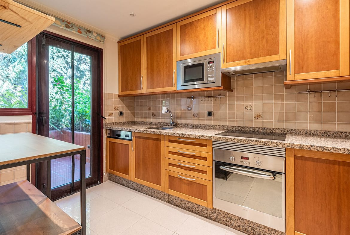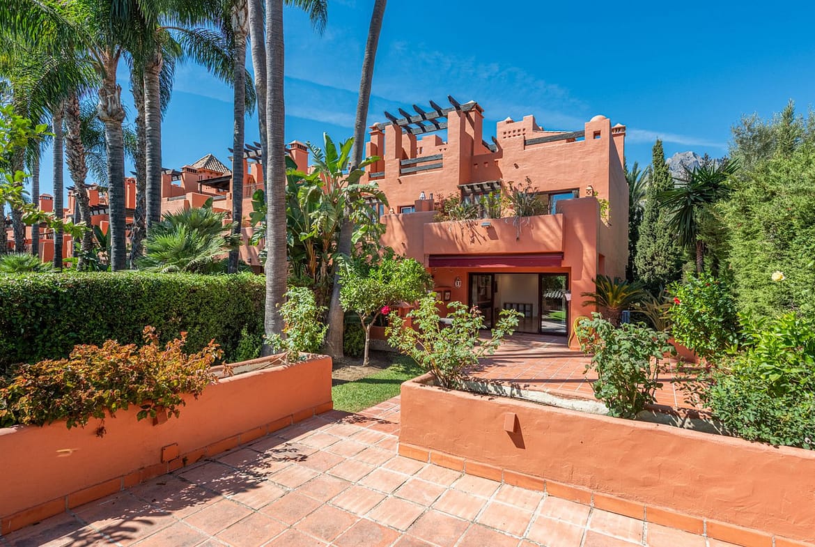 This elegant townhouse in the sought-after Monte Marbella community on Marbella’s Golden Mile is spread across four levels and offers generous living spaces alongside a prime location. The basement features a versatile bedroom with natural light, perfect for guests, staff, or use as a home office. On the ground floor, the home welcomes you with a bright and spacious open-plan living and dining area, a seperate fully equipped kitchen, and a guest toilet. From here, large sliding doors open to the private south-facing garden and terrace, an ideal setting for outdoor dining and year-round sunshine.