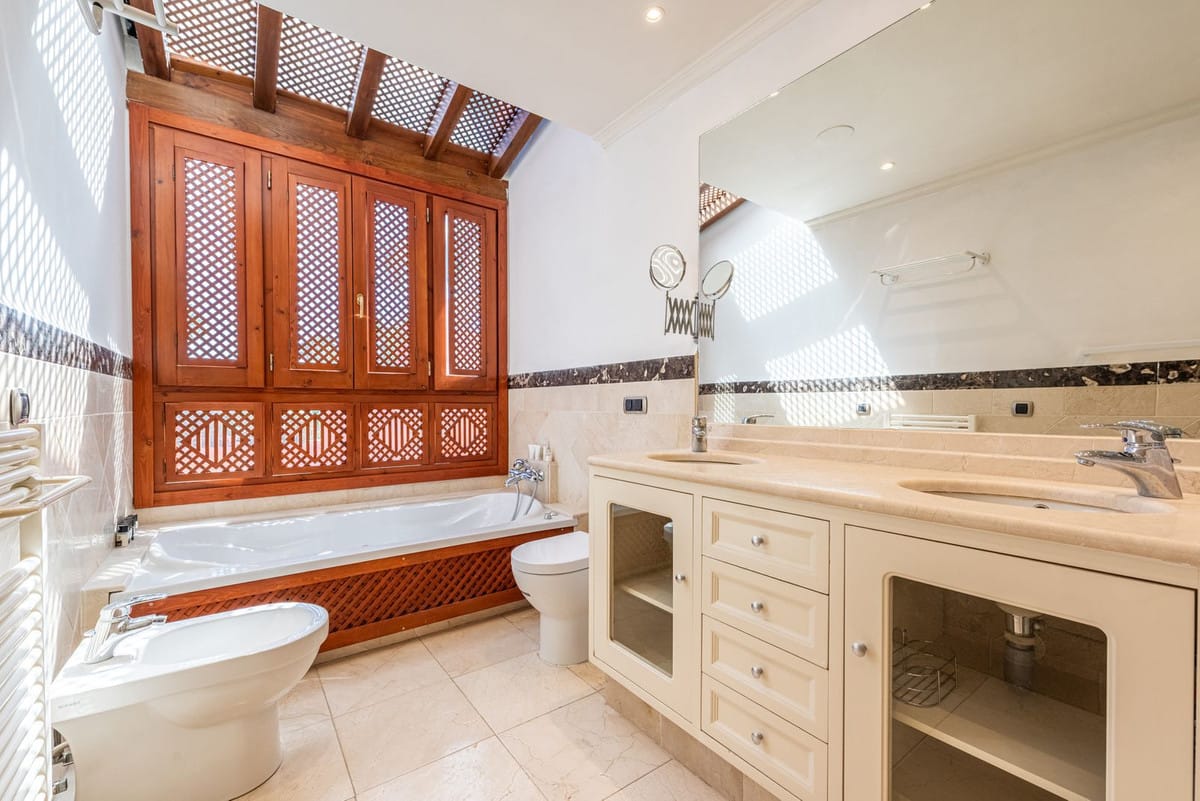The first floor is dedicated to family living, offering three bedrooms. The master suite enjoys its own ensuite bathroom, while the remaining two bedrooms share a bathroom. Upstairs, the property is crowned by a private solarium, providing a tranquil retreat with ample space for sunbathing, entertaining, or simply enjoying Marbella’s beautiful climate and views.