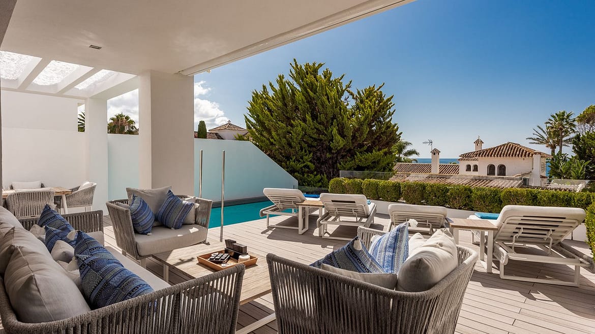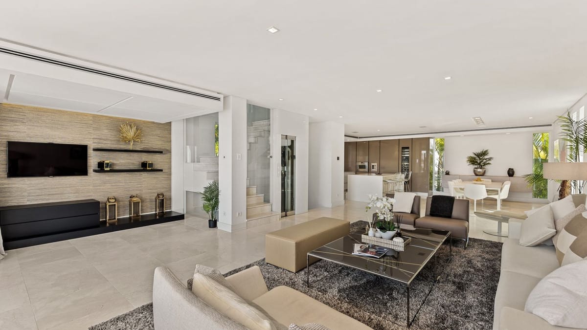 This exquisite and distinctive contemporary residence situated in Puente Romano has undergone a comprehensive renovation to meet the highest standards. Characterized by sleek, straight lines, this property is abundant in natural light and boasts remarkable decor. It is equipped with energy-efficient systems, home automation, and advanced audio-visual technology. The layout includes four bedrooms and four bathrooms spread across two levels, featuring an open-plan design. The outdoor area offers a spacious private swimming pool, a well-maintained garden, and a barbecue space. Ideally positioned within the 5-star Hotel Puente Romano complex, this villa is merely a short walk from the esteemed Golden Mile promenade and the Mediterranean Sea.