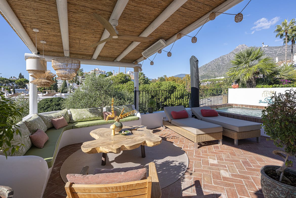 Situated in the sought-after urbanisation of Arco Iris in Altos de Puente Romano, this exceptional townhouse offers a rare opportunity to own one of the most spacious homes within the community. Set in the heart of Marbella’s Golden Mile, just a short walk from the renowned Puente Romano Resort, the beach promenade, and charming dining venues at Forum, its prime location gives residence convenience, prestige, and Mediterranean lifestyle.