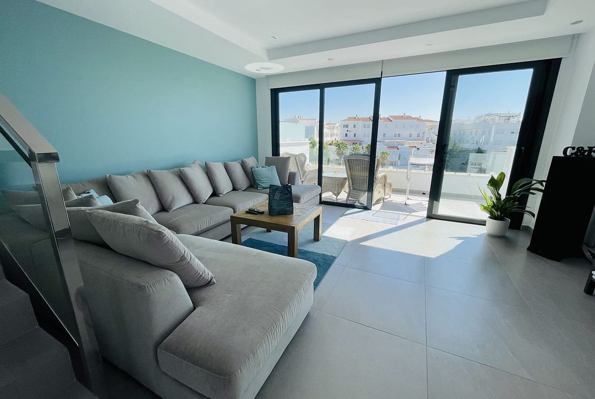 This is a Amazing corner villa with 4 bedrooms for rent with own elevator/ lift from the garage all the way up to the roof terrasse, fully furnished with quality beds etc- underfloor heating. Amazing views also to the sea. It is a very privat villa with lovely sunny terrasses also on the roof.