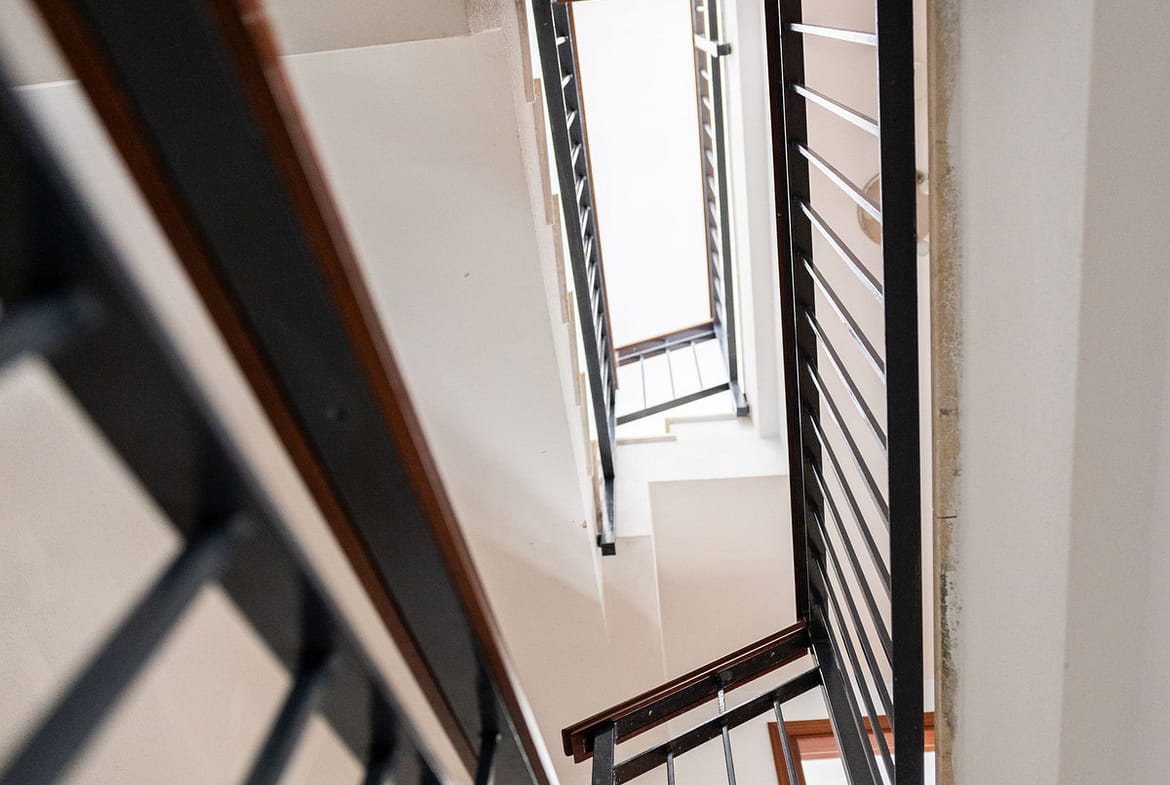 On the entrance floor opens a spacious living room with an atmospheric fireplace. There is a convenient connection from the dining room to the spacious kitchen. The middle floor has three comfortable bedrooms, one of which has its own bathroom. In addition, there is one more bedroom on the top floor of the apartment, which offers a wonderful sea view. From here you can also enjoy your own large roof terrace, sunshine and beautiful scenery.