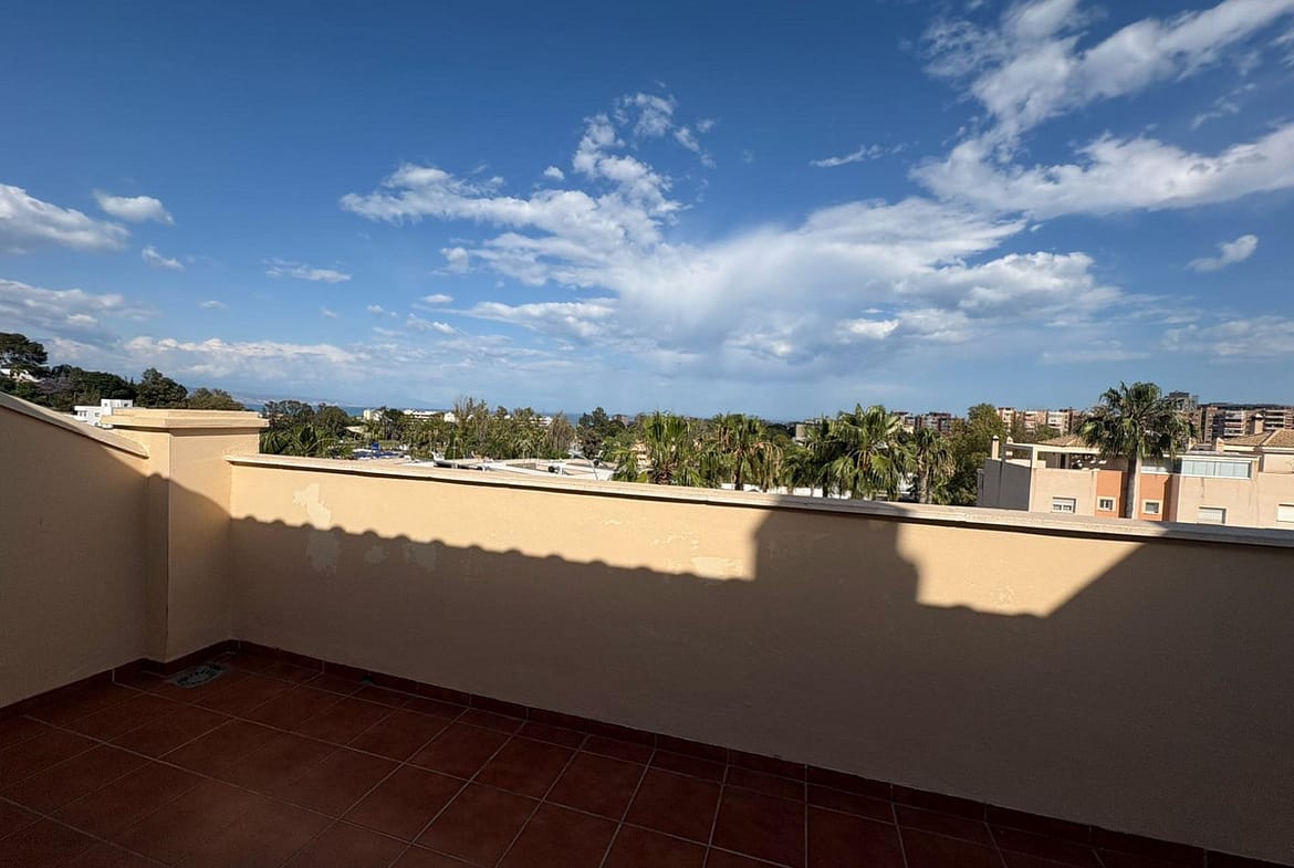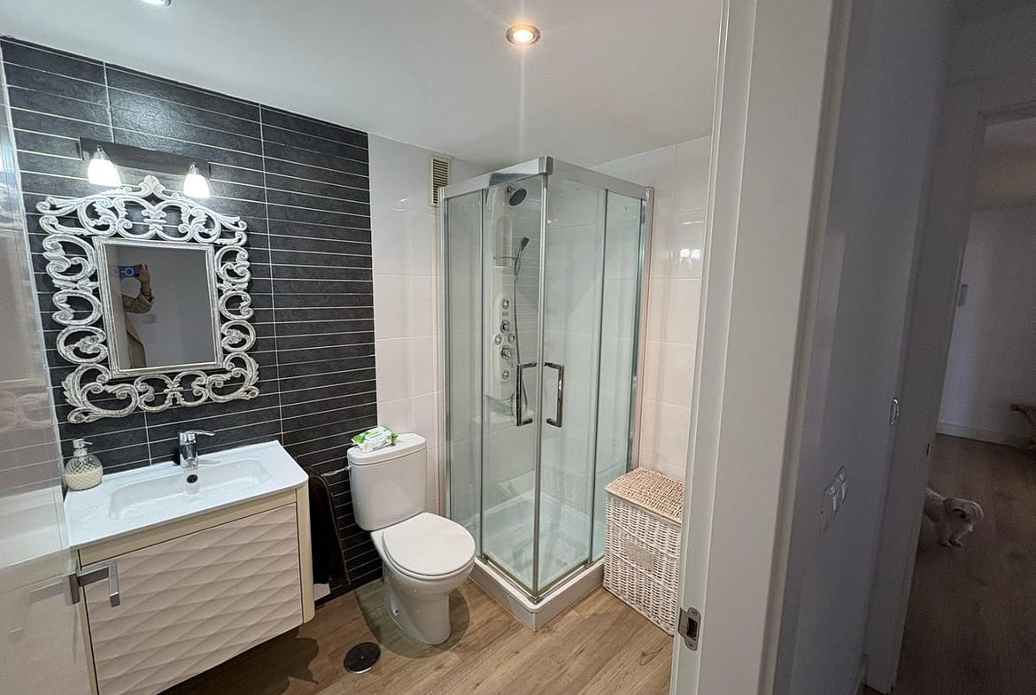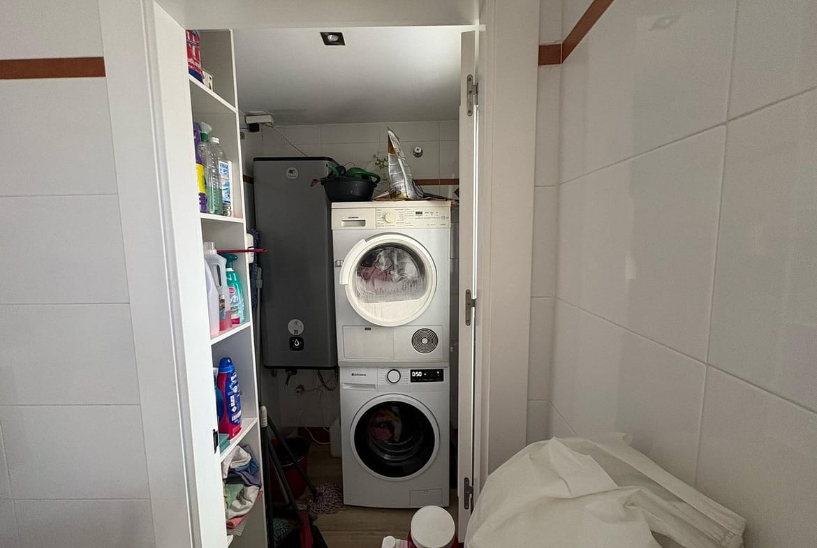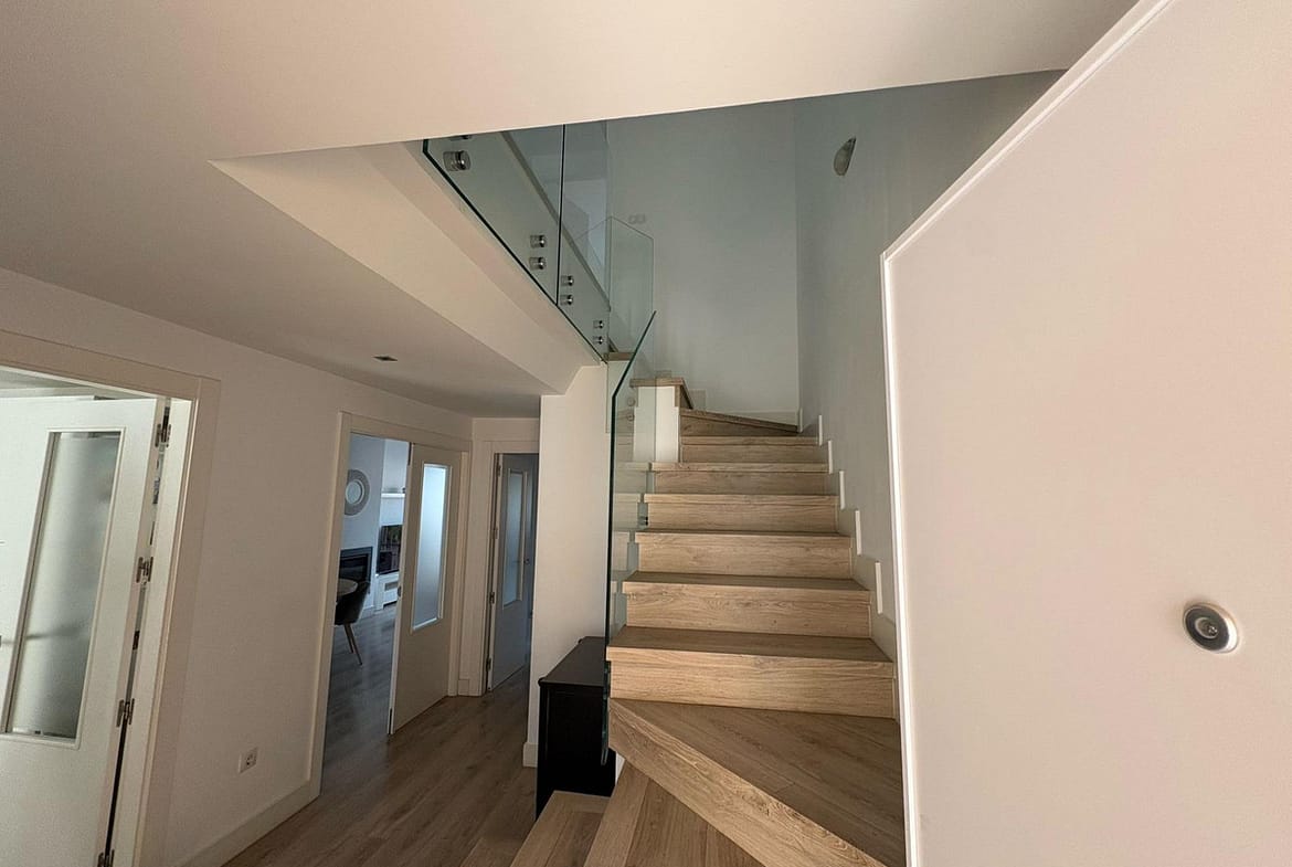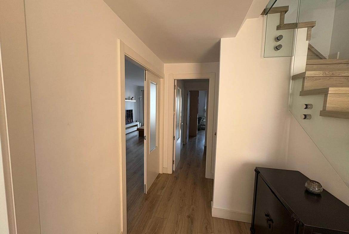 Upon entering, you’re welcomed by a spacious and bright foyer featuring a modern staircase with a tempered glass railing, adding a contemporary touch to the home. The main floor offers a functional layout with a fully equipped kitchen, separate laundry room, a full bathroom, one bedroom, and a spacious living-dining area with direct access to a generous terrace. From here, you can enjoy breathtaking open views of the Bay of Málaga — a true daily luxury.