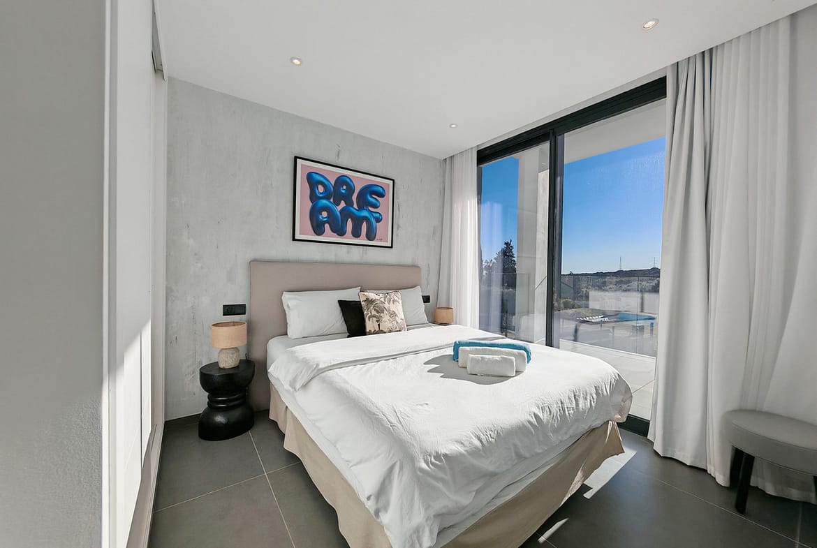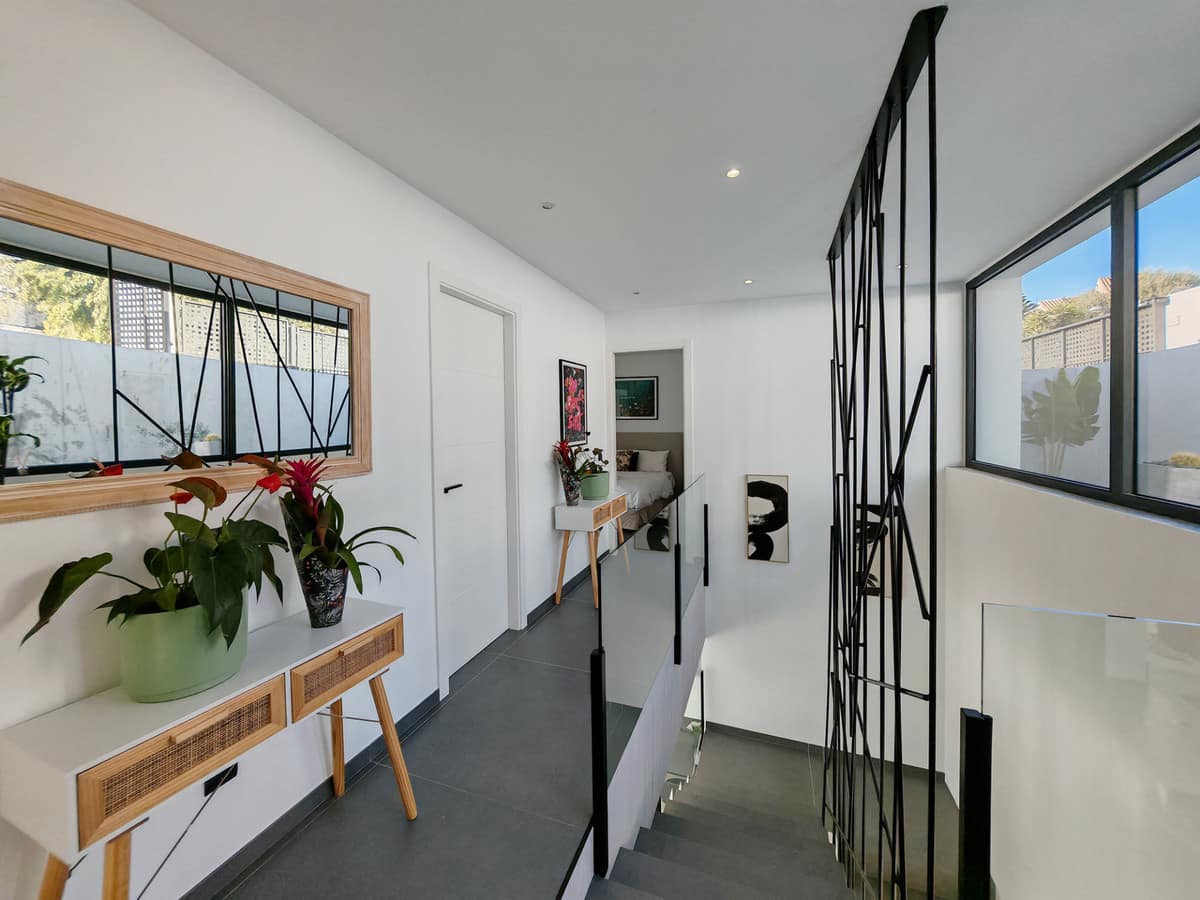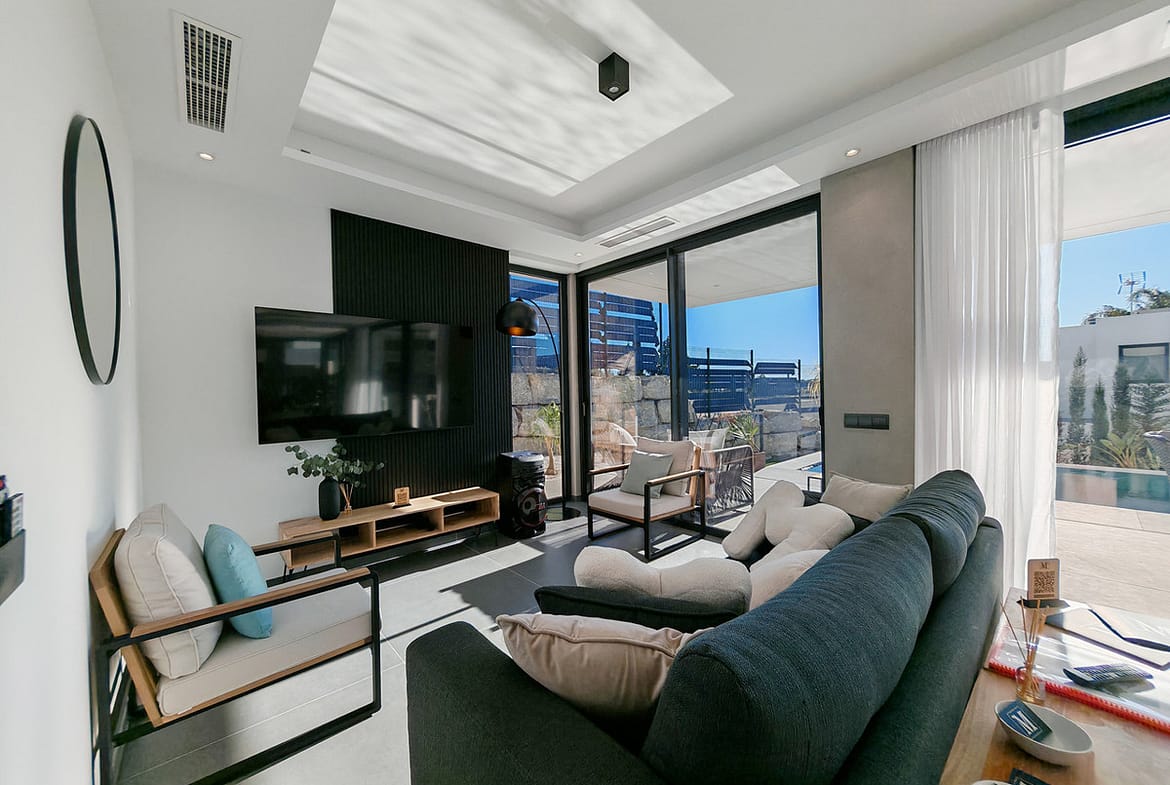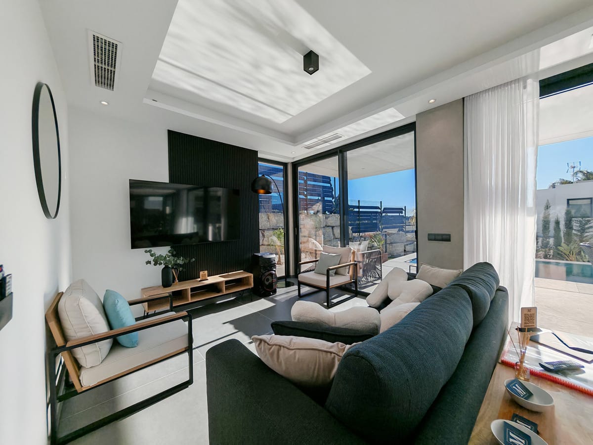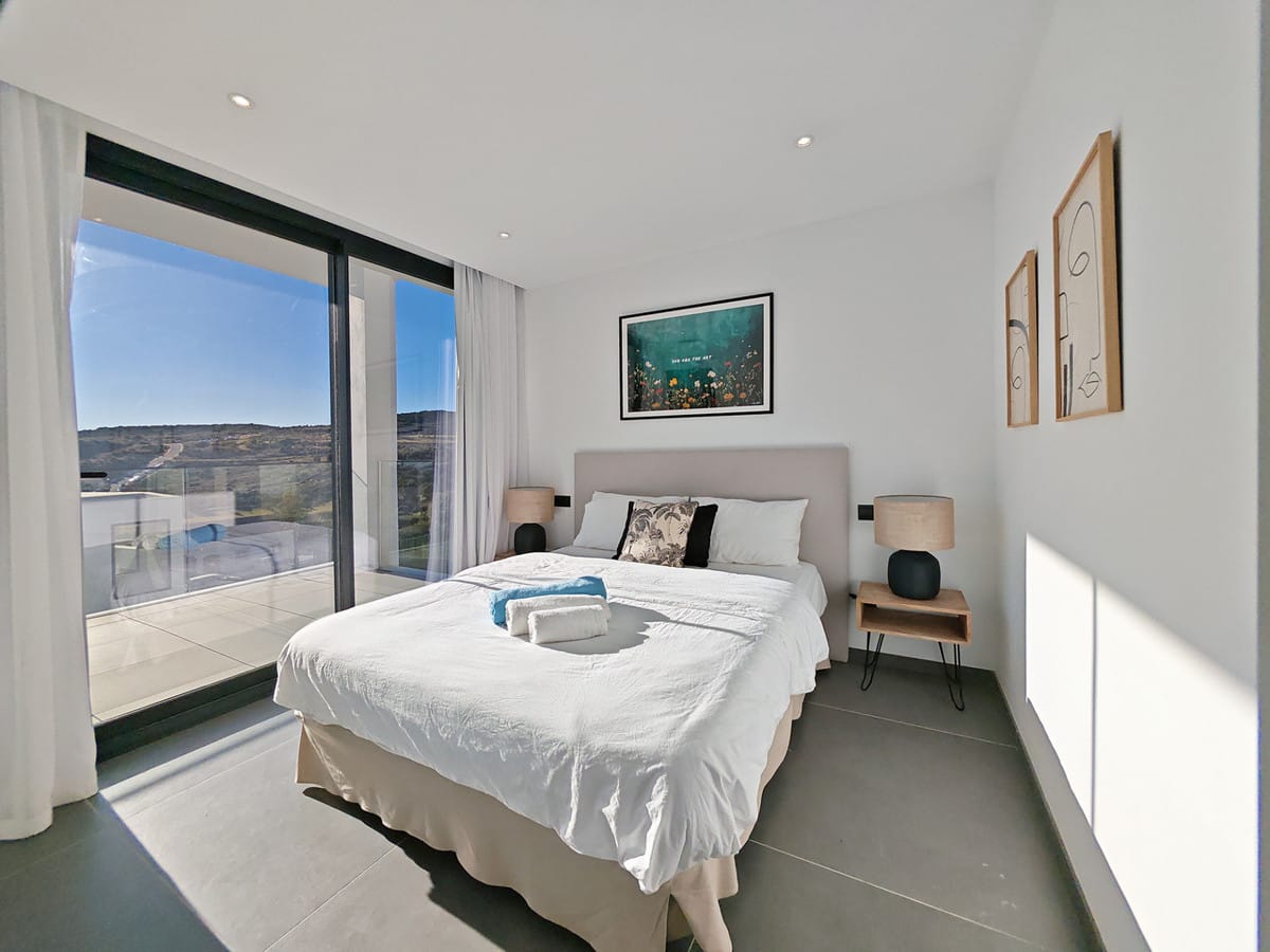 Villa for sale in Valle Romano, Estepona with 4 bedrooms, 3 bathrooms, 1 on suite bathroom, 1 toilet and with orientation west, with private swimming pool, private garage (1 parking spaces) and private garden. Regarding property dimensions, it has 316 m² built and 495 m² plot. Has the following facilities amenities near, transport near, air conditioning, fully furnished, fully fitted kitchen, basement, guest room, alarm, brand new, guest toilet, kitchen equipped, living room, country view, mountain view, golf view, heated pool, automatic irrigation system, smart home system, laundry room, internet – wi-fi, covered terrace, fitted wardrobes, garden view, pool view, underfloor heating (bathrooms), close to sea / beach, close to golf, uncovered terrace, glass doors, open plan kitchen, close to shops, close to town, close to port, close to schools and surveillance cameras.