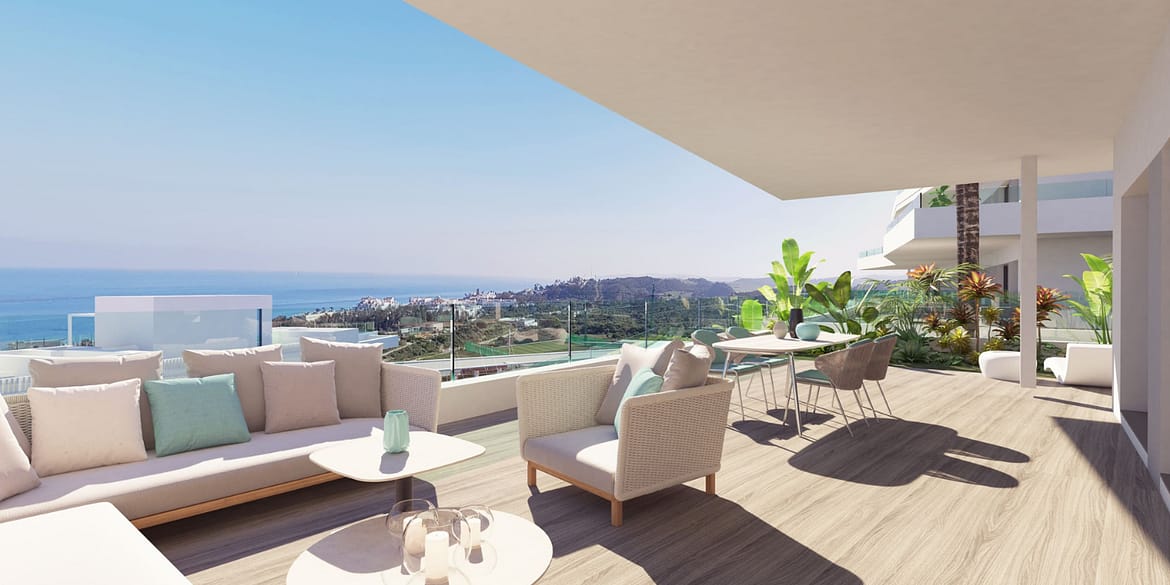 in the much sought-after Costa del Sol area of Estepona. The stylish apartments are in a prime position for enjoying the luxury outdoor lifestyle southern Spain is known for with the blue flag beaches and a wealth of amenities within walking distance, as well as being on the doorstep of the best golf courses on the Costa del Sol. This area is well coveted and is becoming one of the hotspots of the Costa del Sol with its own comprehensive infrastructure of international and local schools, brand new modern hospitals, as well as a superb selection of sporting facilities such as Equestrian centres and tennis clubs. Sitting at the foot of the Sierra Bermeja Mountains, Estepona is located to the west of Puerto Banús and Marbella and encompasses a range of beautiful beachside resorts. Two of the most popular include Playa del Cristo and Playa la Rada – This development is perfectly placed to enjoy a relaxed and laidback atmosphere, whilst also offering easy access to the main tourist hotspots. Over the years, the resort has undergone significant development attracting buyers from all over the world. A little further west we find Sotogrande best known for its Polo matches attracting the crème de la crème of society who can be spotted wining and dining in the high-class marina of Sotogrande. These classy contemporary homes seek to provide a perfect blend of design and comfort. Communal areas and spacious home interiors have been designed to make the most of ample natural light, in order to offer an exceptionally attractive product that is well placed for enjoying all that this vibrant and well-known resort has to offer, as well as all the health benefits of Mediterranean living. The design of the units emphasizes interior natural light and inside space that merge seamlessly with the generous outside terrace to create an extended living space to enjoy with your family and friends.