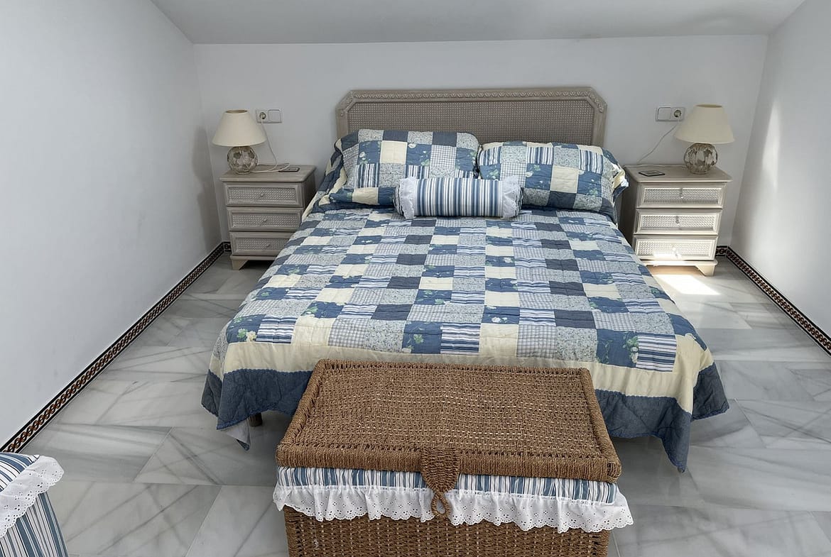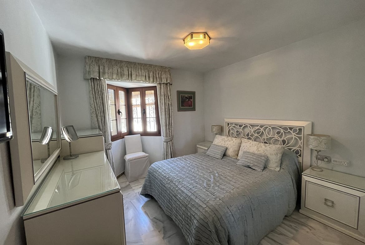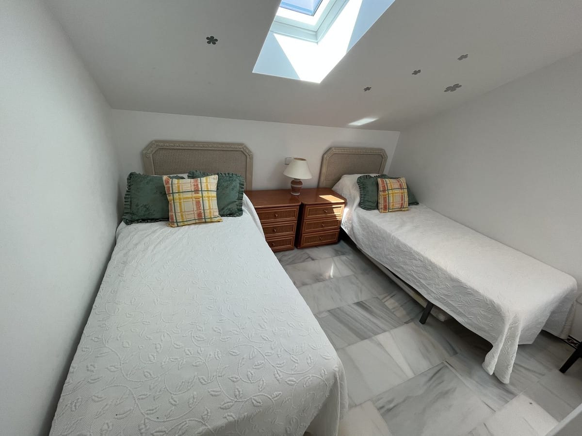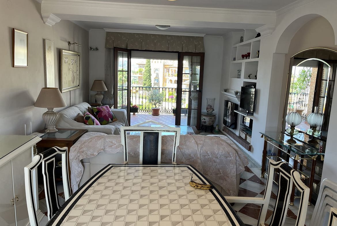 Welcome to this unique property situated in one of the most be beautiful complex on the Costa del Sol, Puebla Aida. As you walk in you will find a landing leading onto the kitchen and a large living area with two terraces. On this same landing there are three bedrooms and two bathrooms. On the upstairs landing there are two bedrooms and one bathroom all with natural light with an independent boiler and electrics. The complex consists of 4 swimming pools, three all near to this apartment, cobbled alleyways, plazas and fountains. A community built in 20 years with 300 apartments all different. This property is the only 5 bedroom in the entire complex.