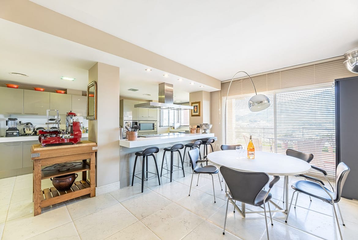 With Almost 1200m2, this amazing property has 5 bedrooms with 5 bathrooms en suite, one guest toillet, living room with double high ceilings, separate dinning room, kitchen with two double fridges, two ovens, two dishwashers, huge solarium with a private heated pool on the rooftop, and 360º views to the sea, mountain and golf.