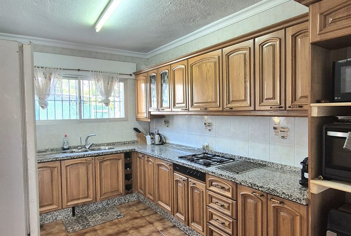 Through the main entrance you have a mudroom / wardrobe where you have space for coats and shoes, to the left you have the first of two living rooms, next to here you have the fully fitted kitchen, with access to a hallway and outside, to the right of the entrance you have 3 bedrooms and a bathroom. Back into the kitchen along the hallway there is the second large living room with fireplace and 2 bedrooms and a bathroom. This living room and one of the bedrooms has air conditioning. There is solar system water heating.