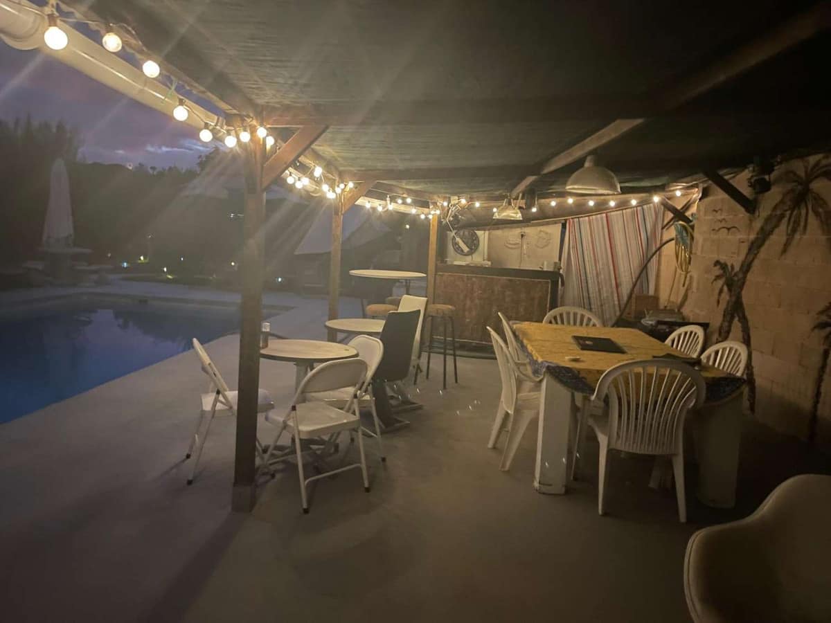 The villa consists of a spacious and bright living-dining room with a fully furnished open-plan kitchen, 4 double bedrooms, 3 bathrooms, several terraces, as well as a covered BBQ area and a splendid saltwater pool. The villa has a gym, a chill-out terrace, a laundry room, air conditioning throughout the house, double-glazed windows, an automatic gate, and a fully renovated house with high-end materials, several parking spaces are available on the plot. The apartment has its own separate entrance, providing more privacy if you want to rent it out. It consists of a living room, kitchen, one bedroom, and a bathroom, as well as a small enclosed patio. The entire property is supplied with electricity via 16 solar panels with a power output of 8.8 kW/h, in addition to mains electricity. The water supply is from a community well. The property has a 10,000-liter water cistern and three 1,000-liter tanks. The property also has a wide variety of fruit trees such as orange, avocado, pomegranate, fig, and mandarin trees, among others.