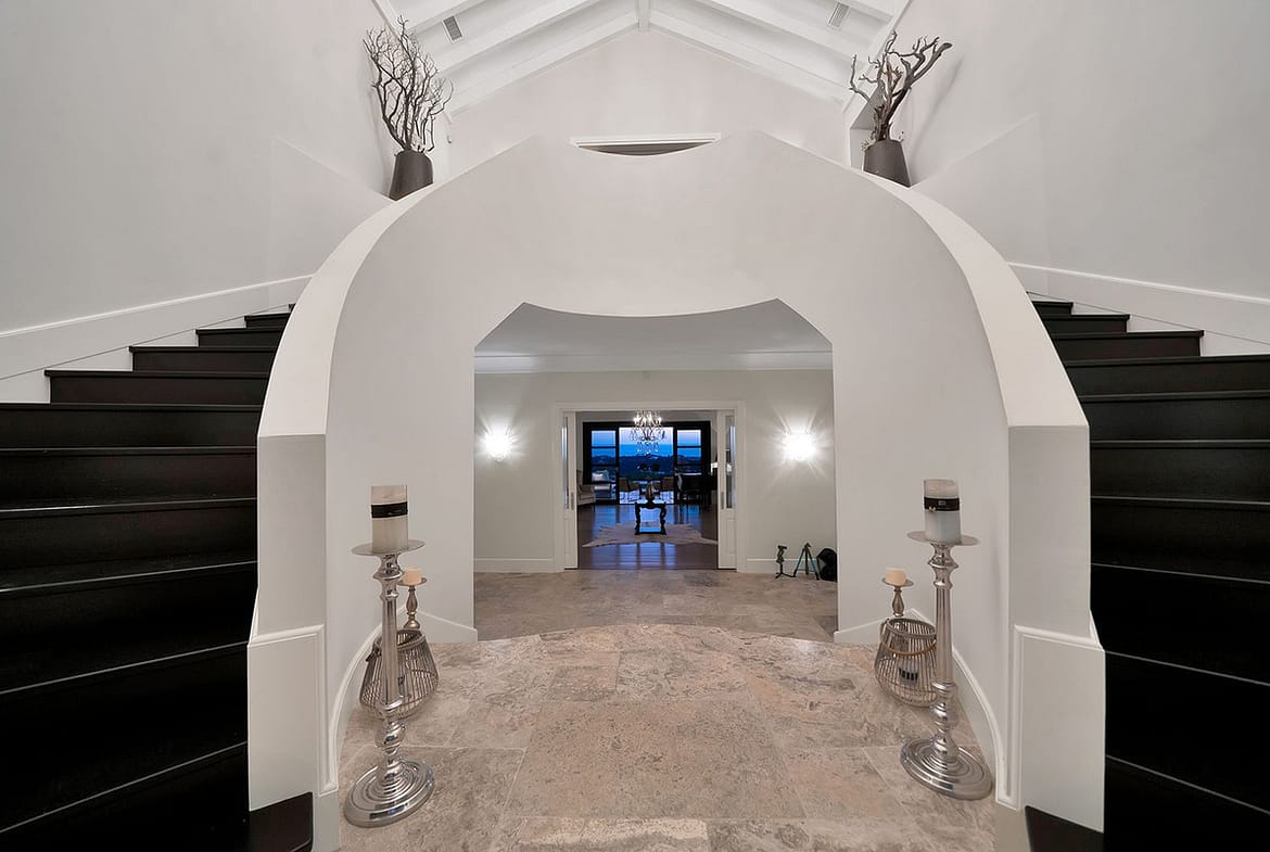 The home combines timeless elegance with space and light throughout. The main house offers four well-proportioned ensuite bedrooms, all designed to make the most of the views and natural light. A separate guest apartment with its own bedroom and lounge provides ideal accommodation for visitors or staff. High-quality finishes and careful detailing are evident in every area of the property.