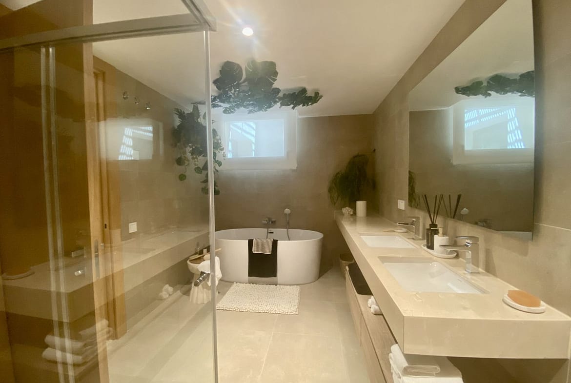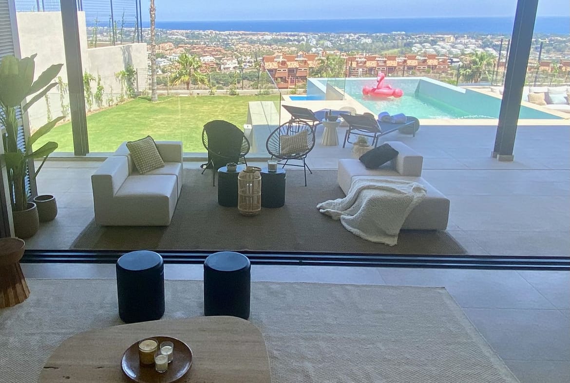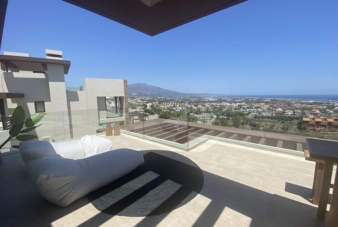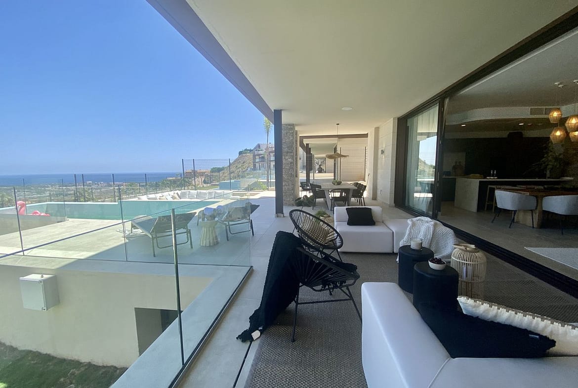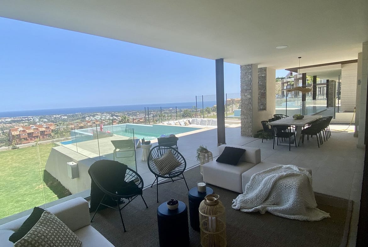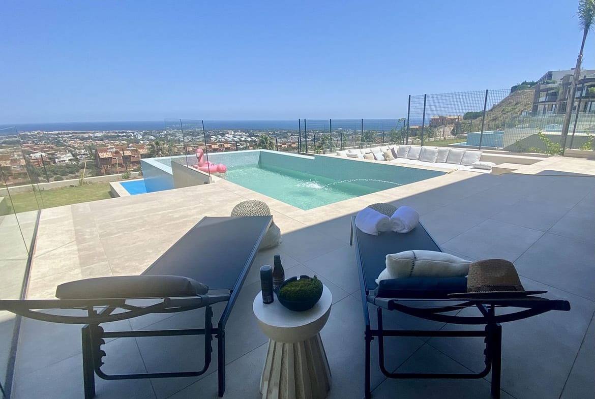 Brand new! A dream of an ultra modern and sustainable villa with panoramic views in the fastest growing area of La Alqueria with several new accesses, sharing in its community of 13 villas, more than 5.000 m2 of Mediterranean gardens. With its private infinity swimming pools suspended in the air, outdoor jacuzzi for 6 people, spacious lounges, al fresco terraces, en-suite bedrooms with walnut wardrobes and bathrooms of the latest design, this is the boutique villa for lovers of tranquillity and the visual beauty that the complex offers with its day and night lights and its open views of the sea. At the same time it is only 10 minutes away from Puerto Banus and its enormous movement and only 5 minutes away from supermarkets and services.
