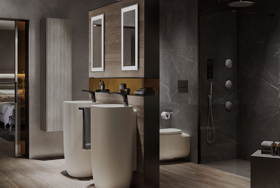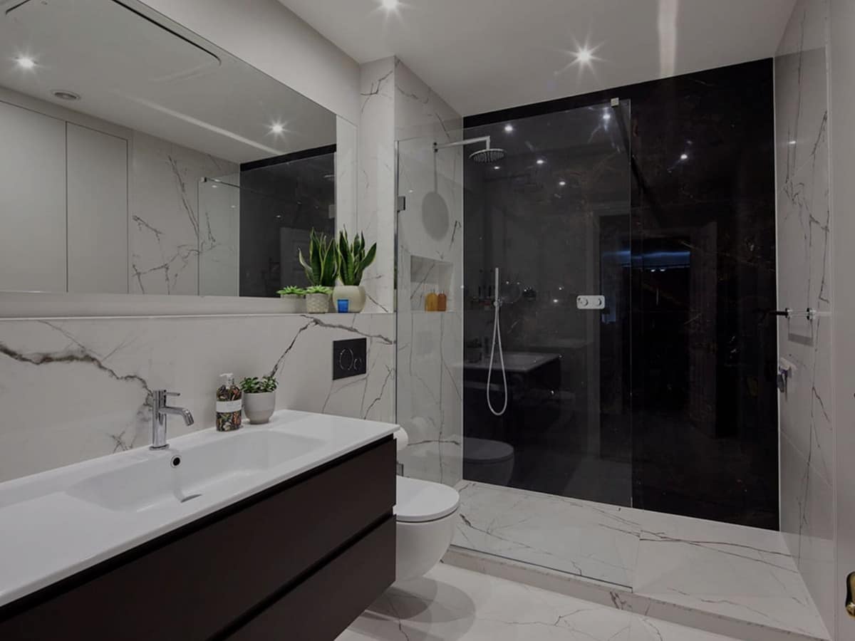 – Bathroom walls with COVERLAM plates (GRESPANIA) 2700X1200 (Color to choose)