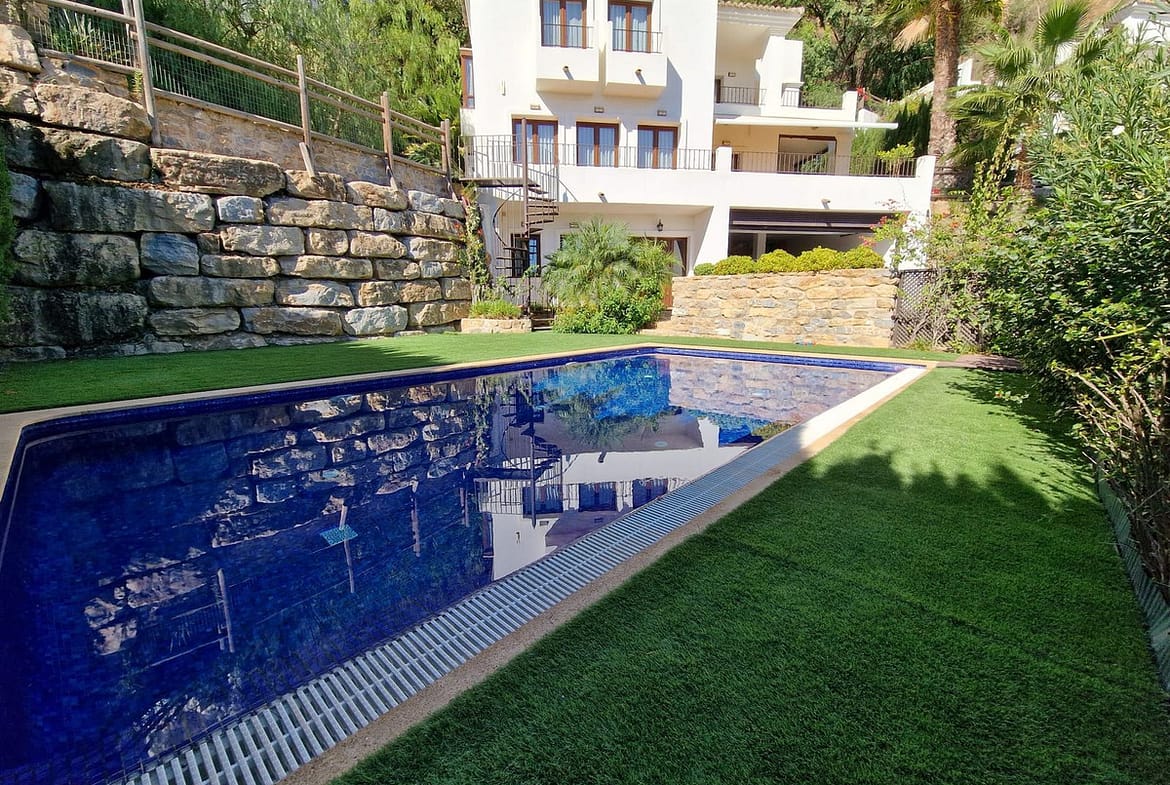 Five-bedroom villa for sale in the exclusive Benahavis Country Club area, with sea and mountain views. Expect the spectacular views and privacy, surrounded by the comforts of the Country Club. The property resides in Benahavis, which is just 10 minutes from Marbella, Puerto Banus and San Pedro de Alcantara.