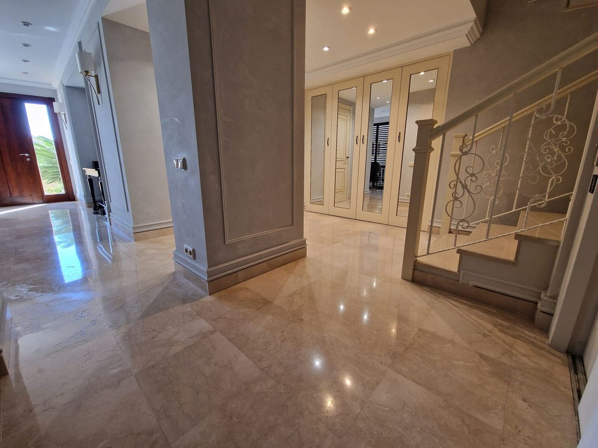 A large property of 492 m2 built, of which 130m2 are terraces, it has four levels and delivers panoramic views to the sea. Outside, there is a garden with mature palm trees, grass areas and swimming pool. Plenty of terrace areas to enjoy the Mediterranean climate also and plenty of large windows to flood the property with light.