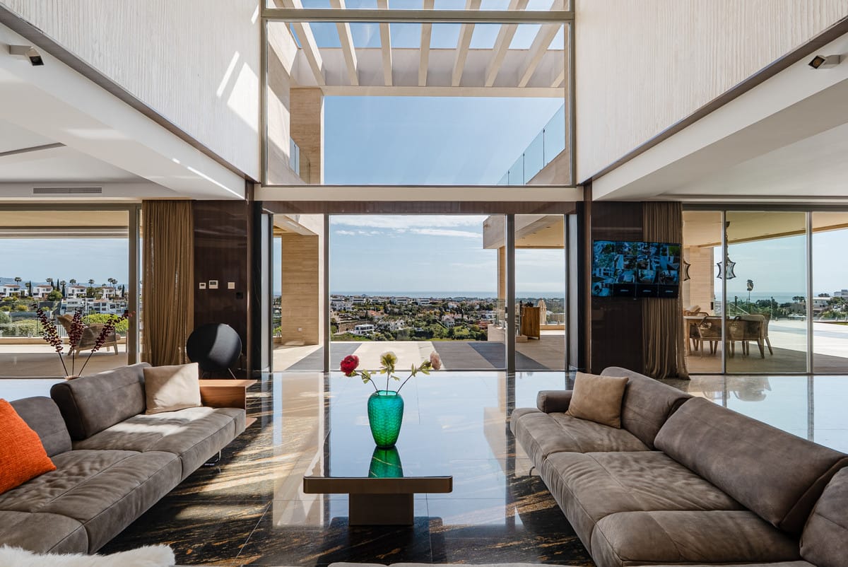Positioned on an elevated and private plot in one of the most sought-after residential areas of Benahavís, this exceptional contemporary villa offers uninterrupted panoramic views across the Mediterranean Sea, golf valley, and surrounding mountains.