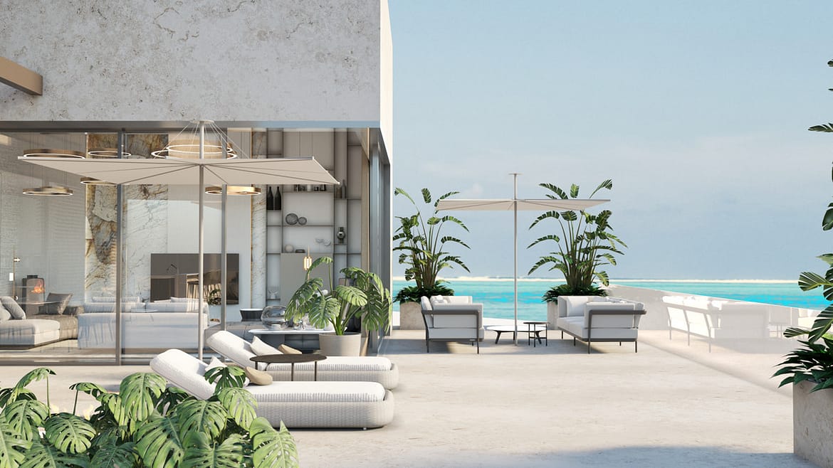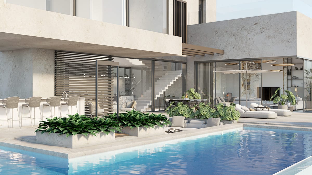 The villa features Sky-Frame floor-to-ceiling sliding doors, ensuring seamless indoor-outdoor living, maximum natural light and uninterrupted views.