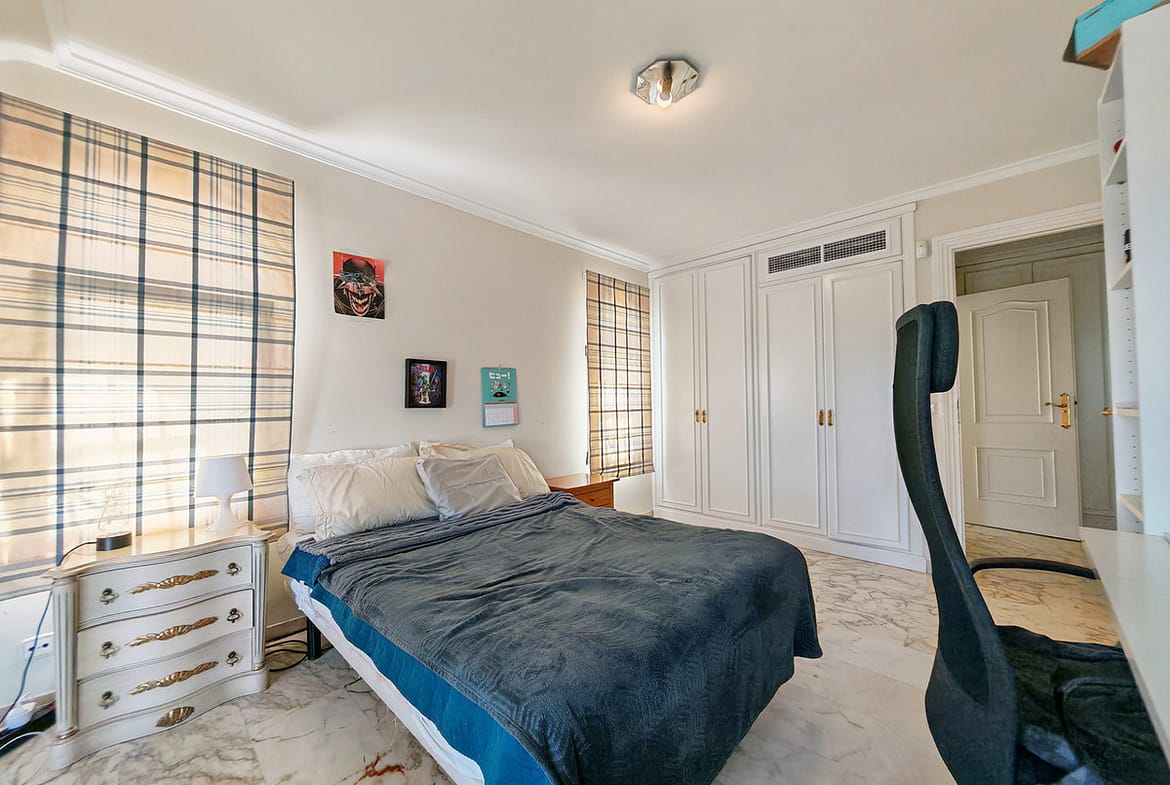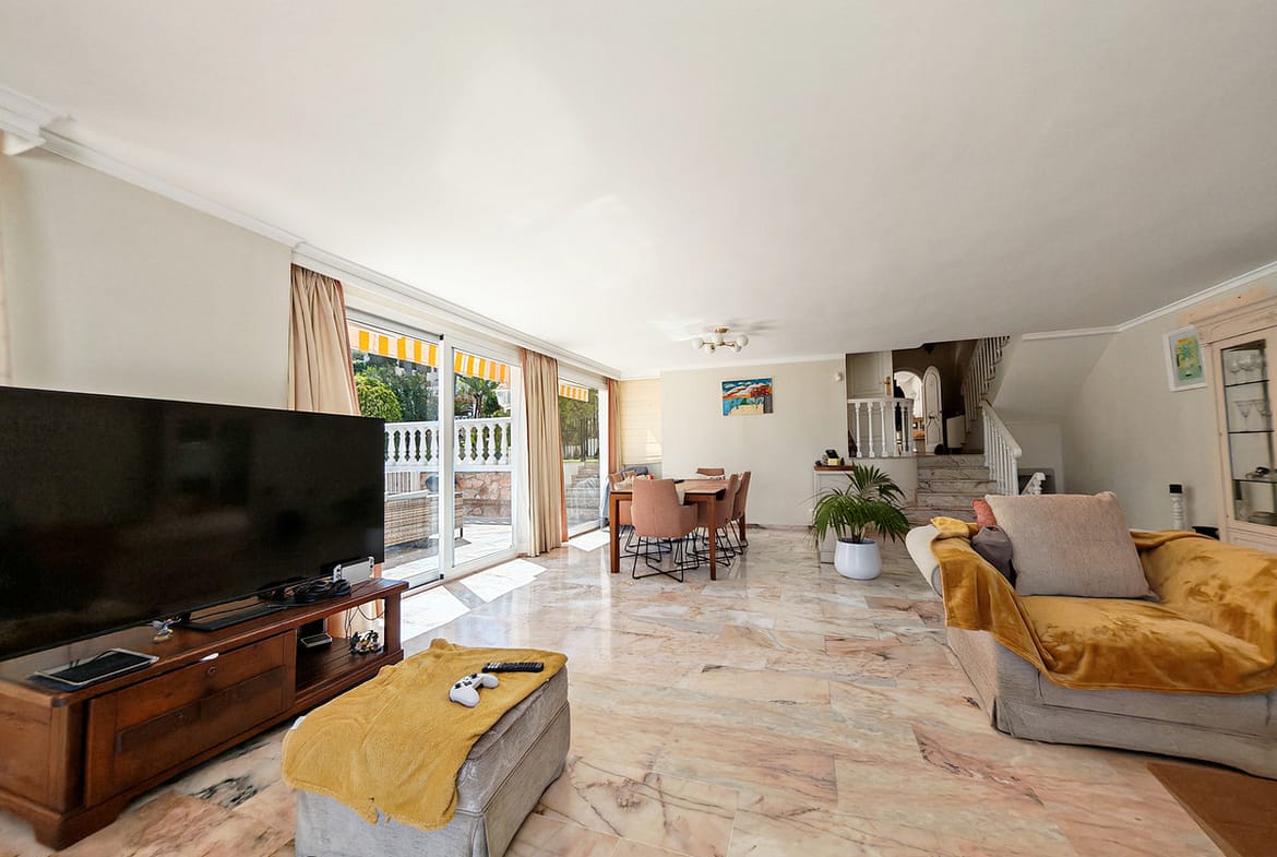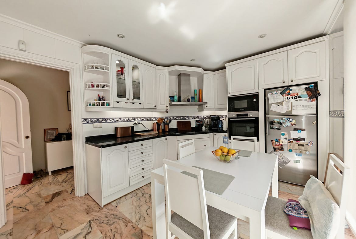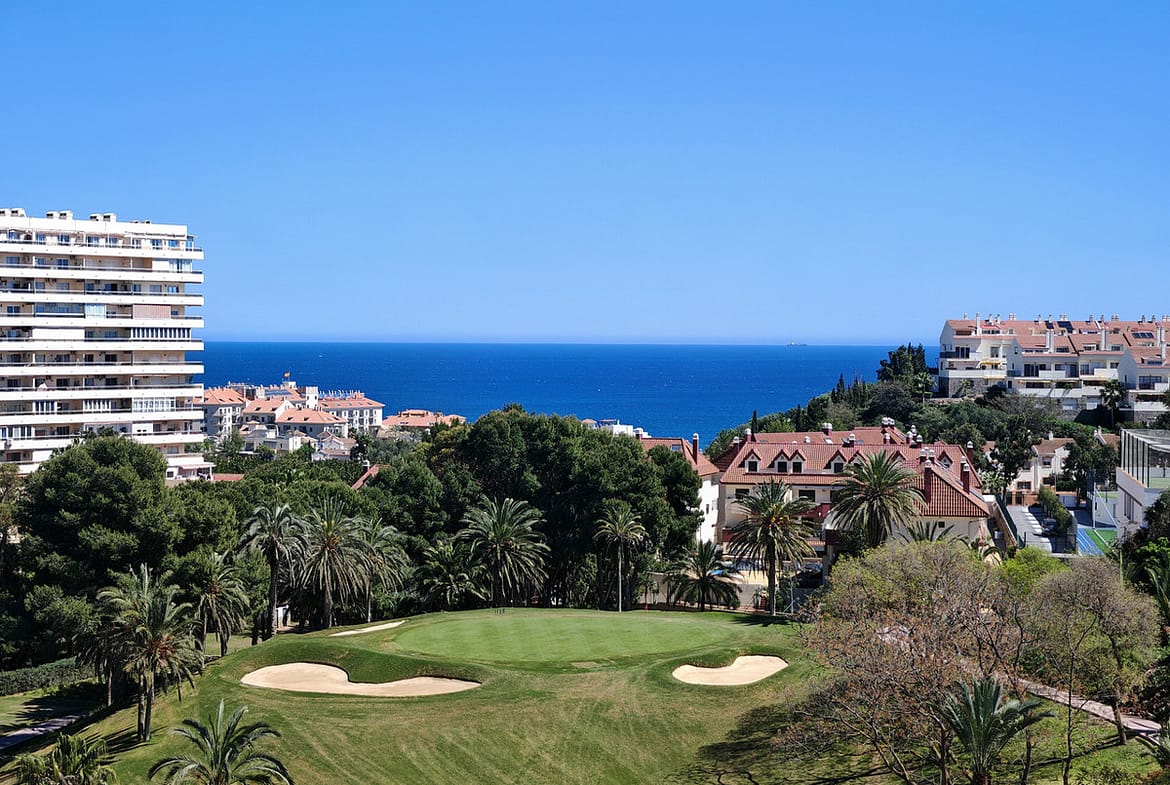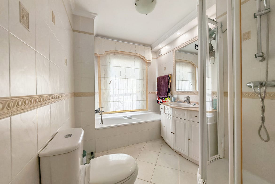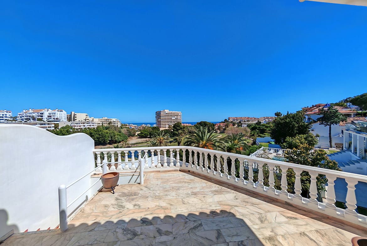 Semi Detached Villa for sale in , Benalmadena with 5 bedrooms, 3 bathrooms, 3 en suite bathrooms, 1 toilet and with orientation south/east, with communal swimming pool, private garage (2 parking spaces) and private garden. Regarding property dimensions, it has 241 m² built, 800 m² plot and 100 m² terrace. Has the following facilities front line golf, amenities near, transport near, air conditioning, central heating, fully fitted kitchen, marble floors, basement, guest room, storage room, solarium, double glazing, dining room, guest toilet, private terrace, kitchen equipped, living room, study room, sea view, golf view, automatic irrigation system, laundry room, gated community, street view, doorman, close to sea / beach, close to golf, uncovered terrace, separate dining room, balcony, optional furniture, good condition, close to shops, close to town, close to schools, guest apartment, inside golf resort, office room, roof terrace and close to restaurants.