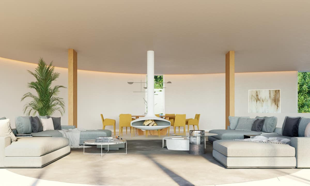 Characterised by the visual strength of its organic forms and spectacular sea views, this home stands as the villa of nature. Dressed in white with touches of wood that go hand in hand to create a suggestive visual play of textures.