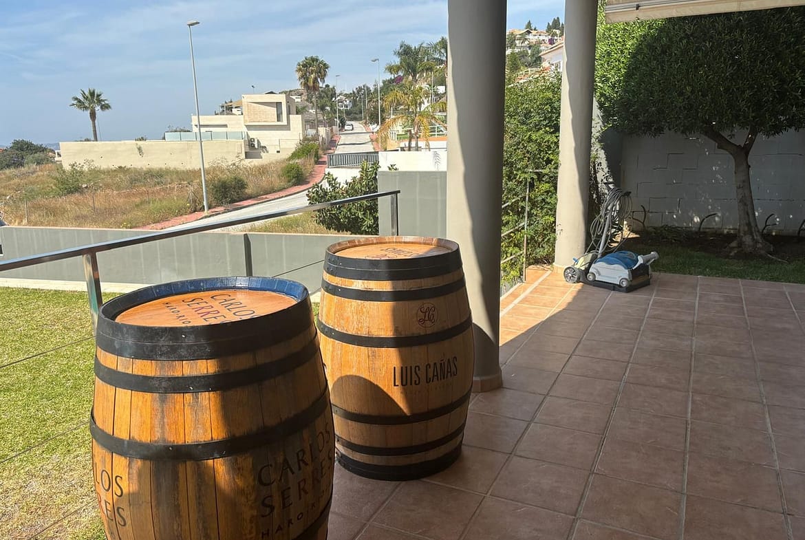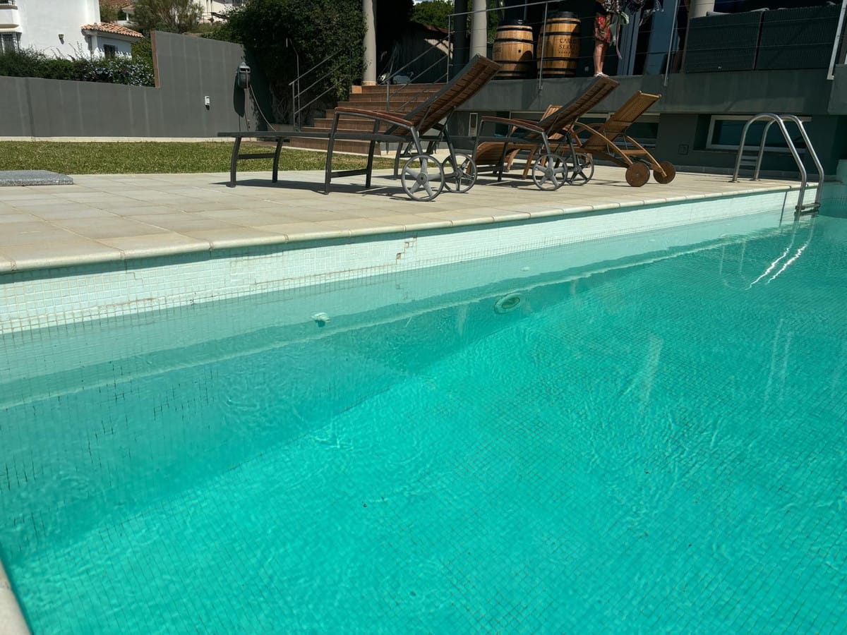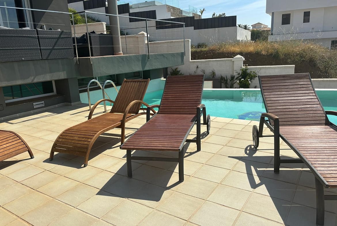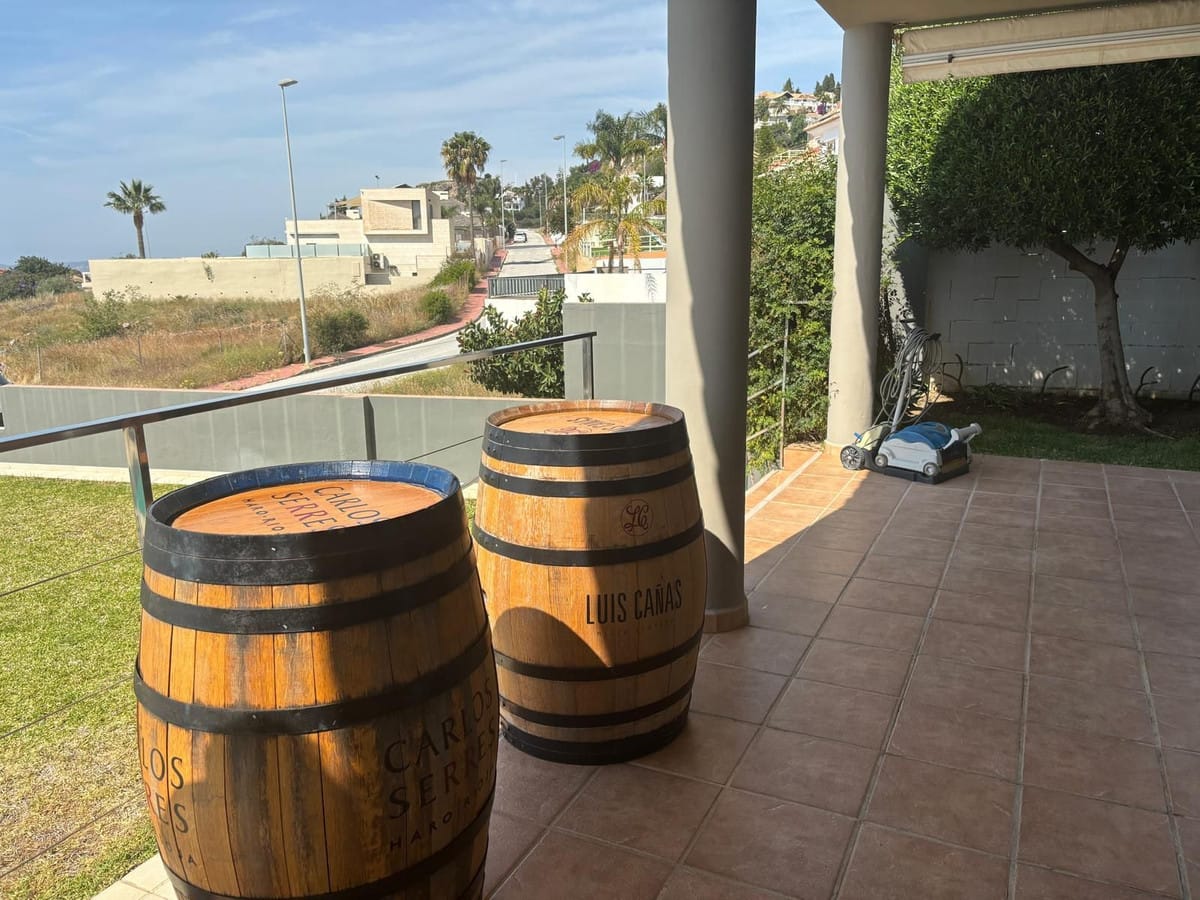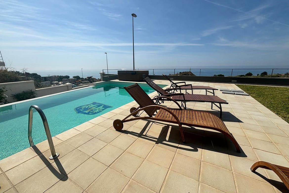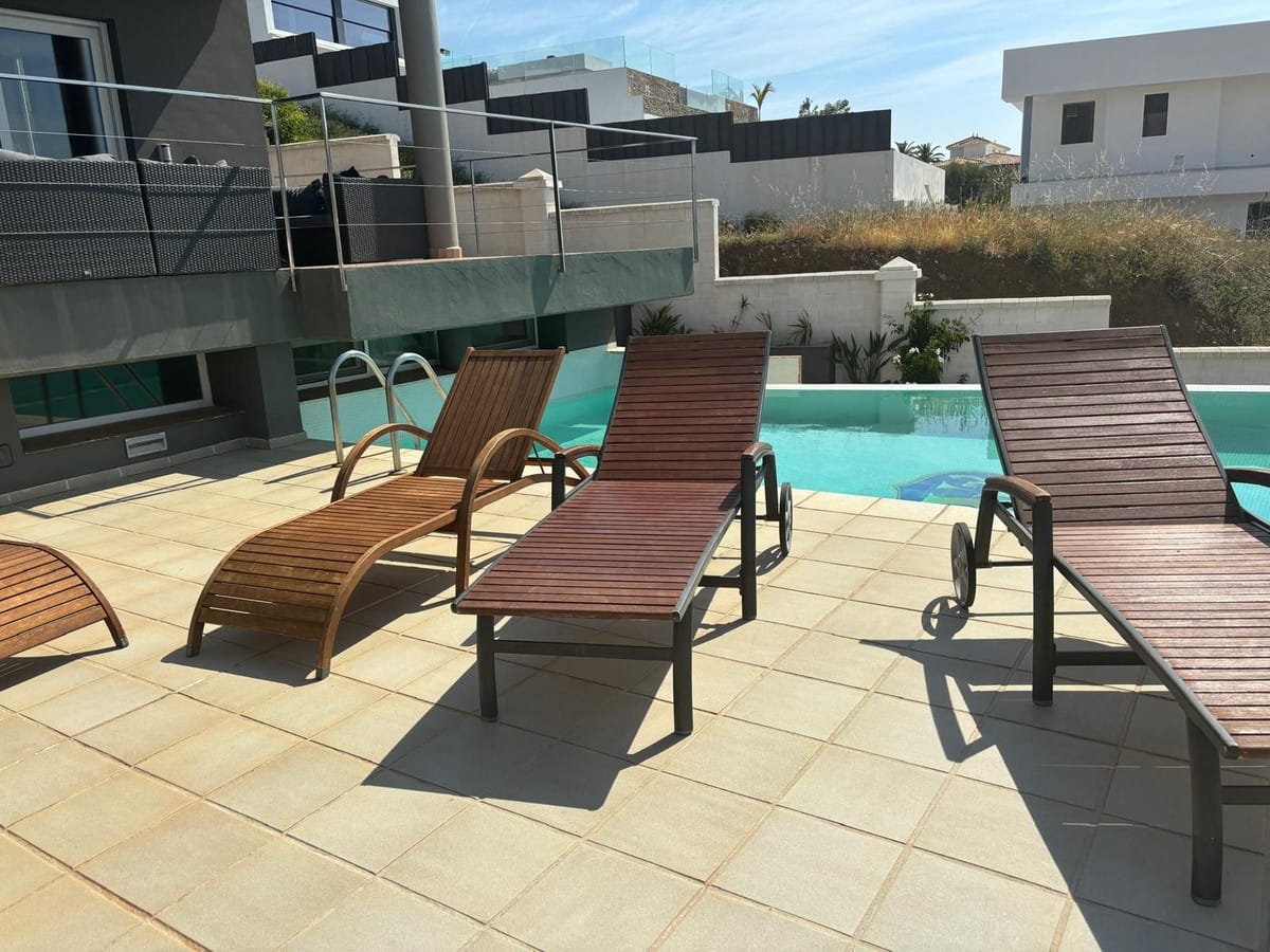 Fantastic villa with 5 bedrooms & 4 bathrooms, scandinavian standard & style with underfloor heating etc. Nice garden with fruit trees and swimmingpool. Spacious garage for 2-3 cars. Amazing panoramic views to the sea.