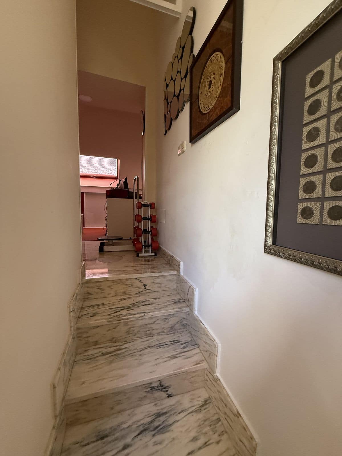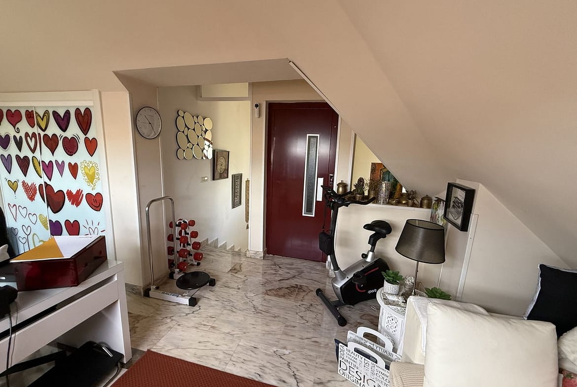 The highest level features a room used as an office and a gym.